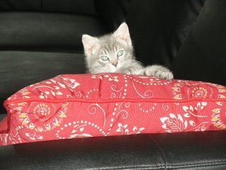 After several weeks of looking for a free cat to adopt, a friend of mine called to say that she had a friend with a four week old kitten who they couldn’t keep due to allergies. Was I interested? I said absolutely. So on Saturday, we headed over to look at the cat and this little face was instantly a keeper.