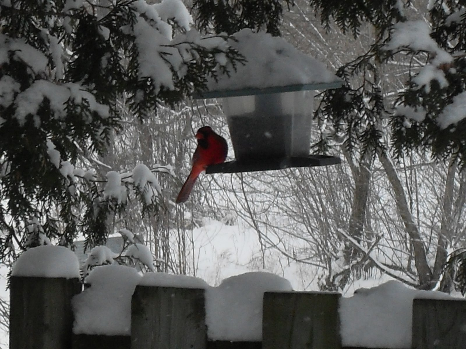outdoors Mrs. Cardinal January 22, 2009 - By Heather The lady has returned looking just as beautiful as ever in her red and brown coat.