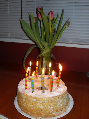 photo: my birthday cake from last week, baked by my visiting mom; it’s angel food cake stuffed with chocolate cool whip. very thankful.
