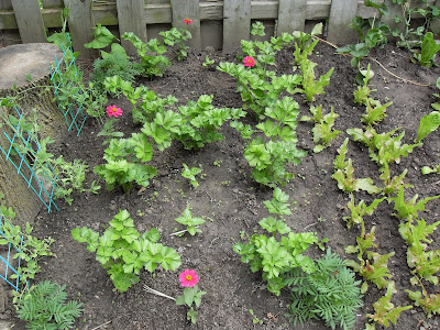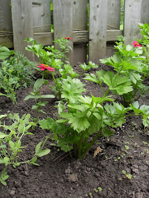 The celery has started to thicken and get bushier with all the rain we have had. The basil is starting to be noticeably bigger but not near as big as the one I gave to my friend Janice. I keep telling her I’m gonna come over and pick her leaves. 🙂
