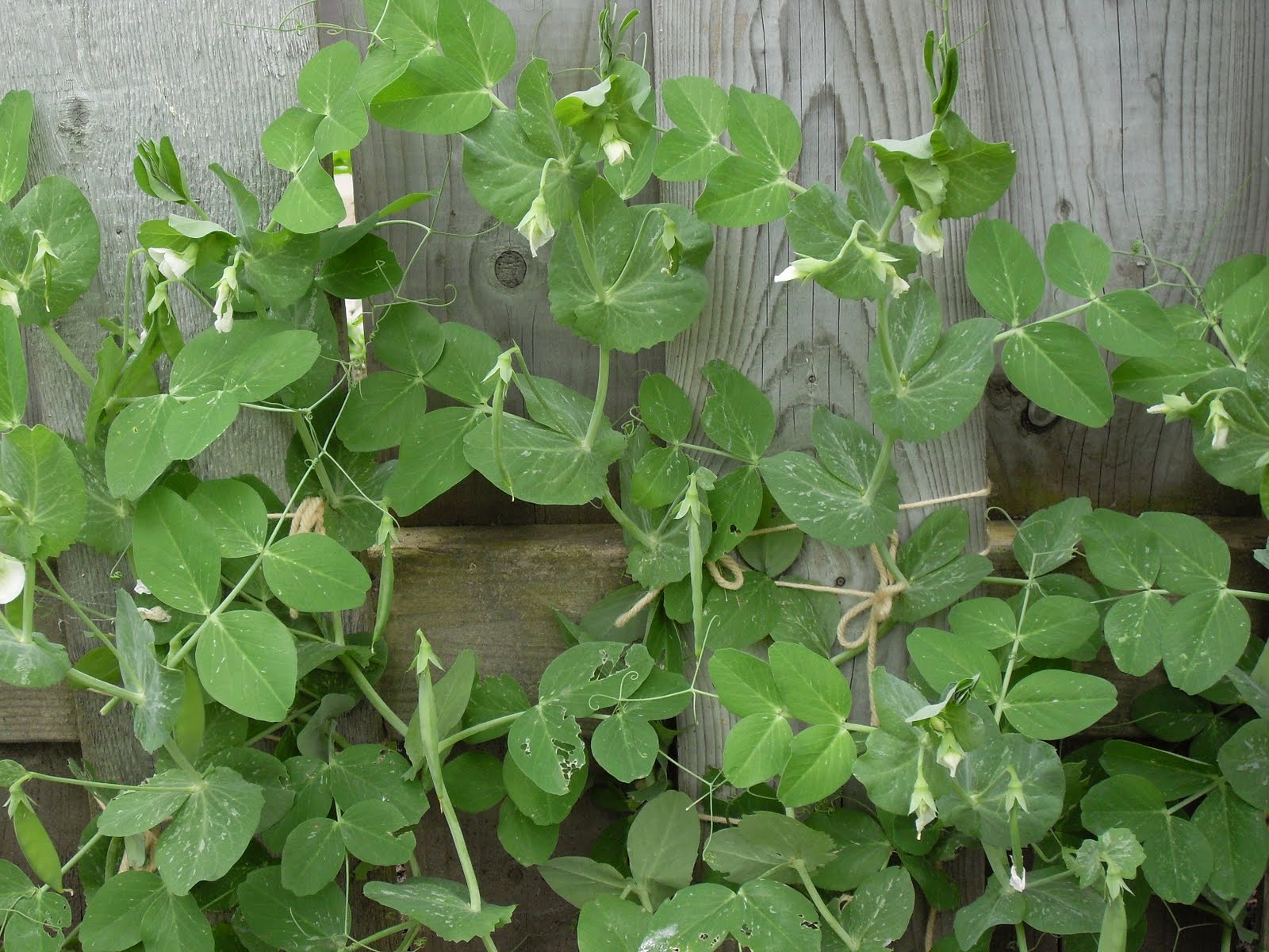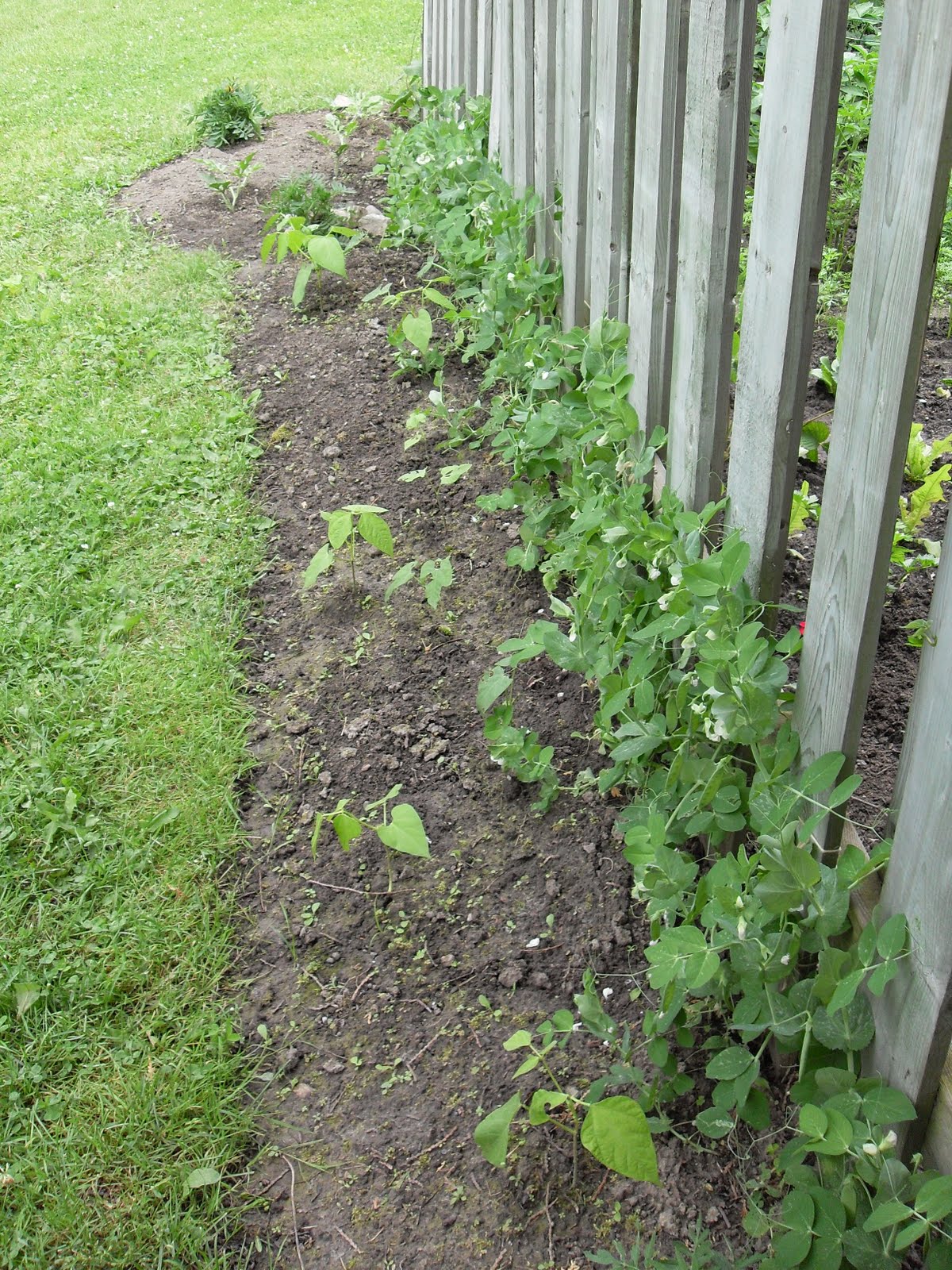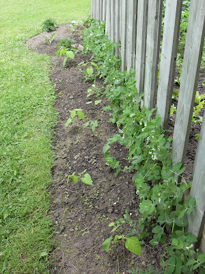The pea plants have been tied on the first round but some of the plants need more support already and the pods are coming fast and thick. I realize in this picture all the pods are hanging sideways so it’s hard to see them. But they are there, the whole row.