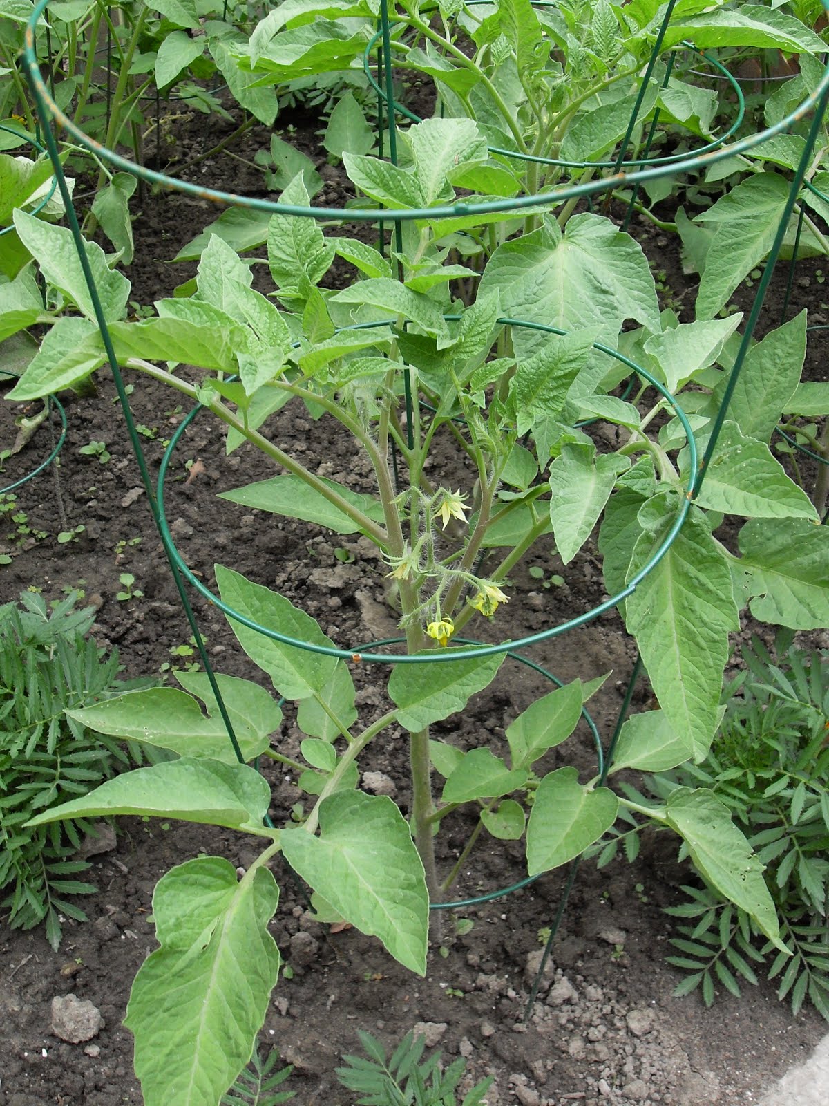 But the big news is the tomato plants! Obviously the two store-bought ones are already bearing green tomatoes but it’s mine from seed that have started to flower and I am very encouraged. I have had a few naysayers around here tell me dismal stories of growing tomatoes from seed and I was determined not to let that stop me. Now if we can just avoid the blight that overtook last year and has been spotted in some of the states this year, I will be a jubilant girl.