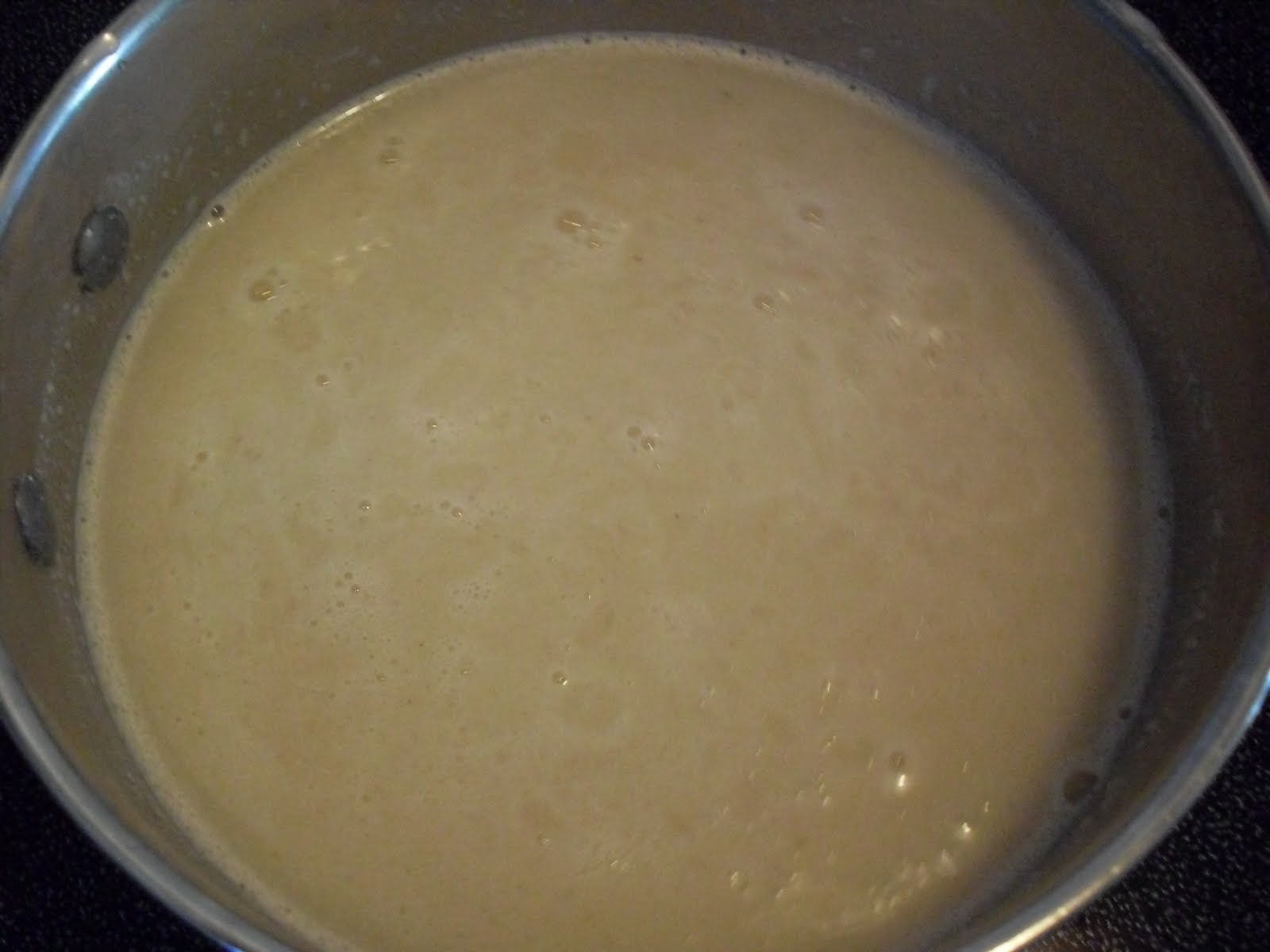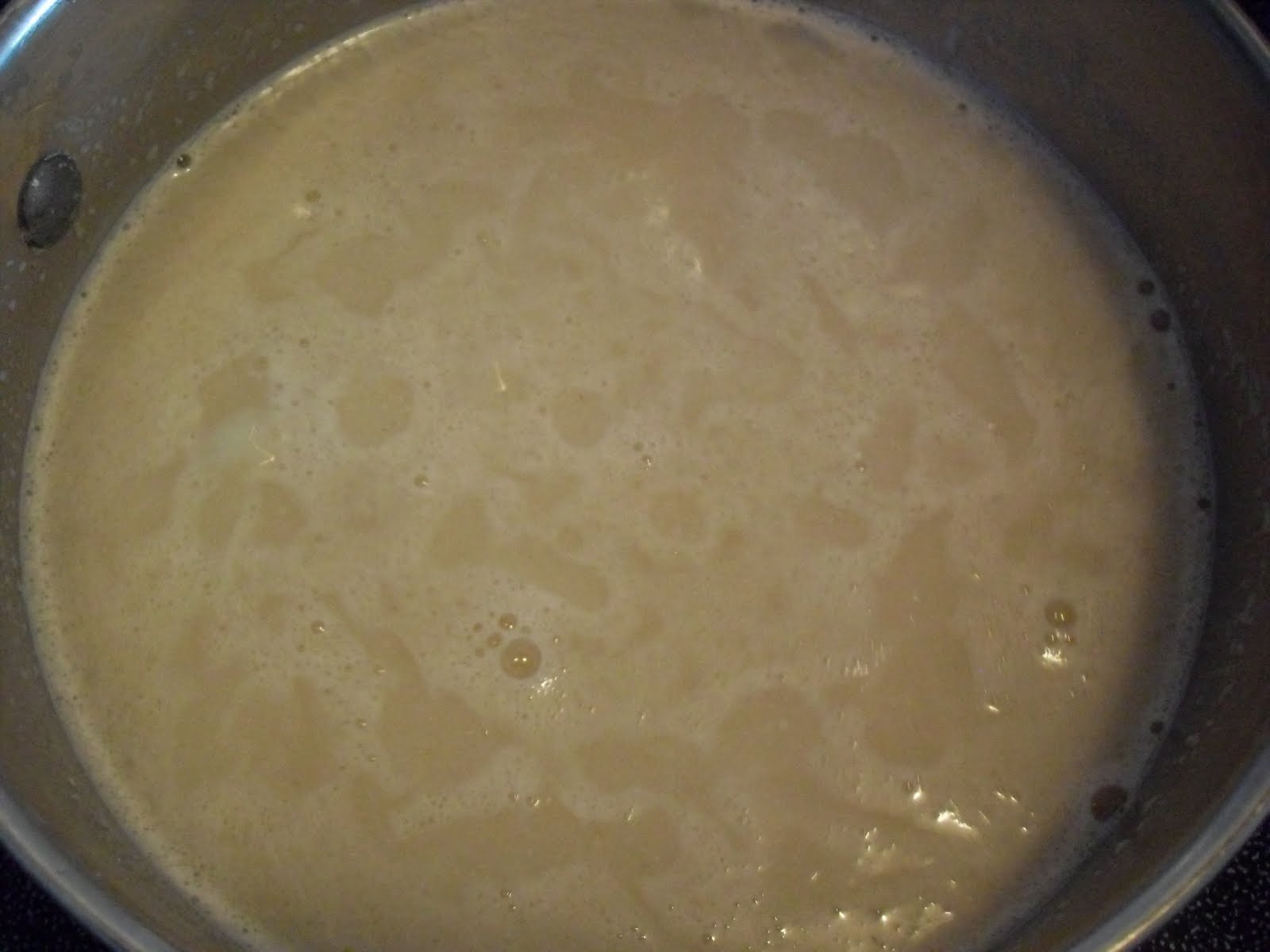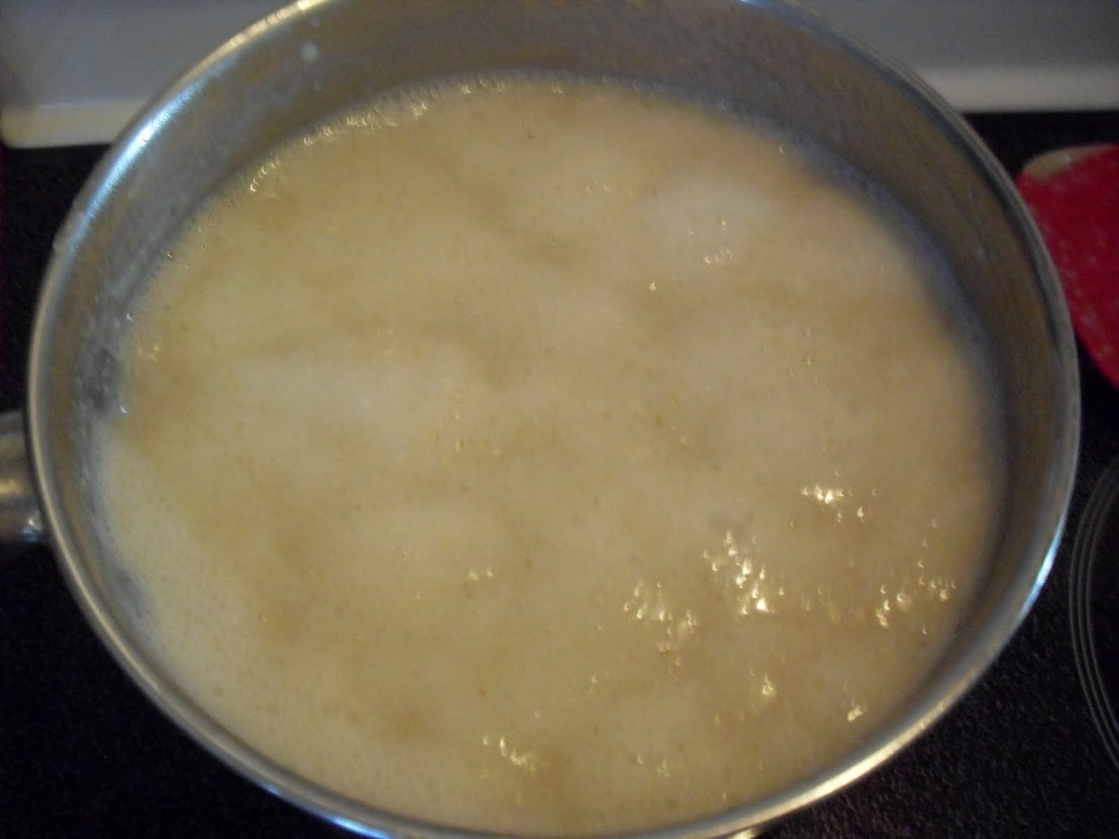 This is a full boil and it’s time to turn down the heat to low-mid range, simmering is what I guess it would be called. Take it off the heat for a moment if you feel it’s going to boil over and make a terrible mess, but do keep up the stirring!
