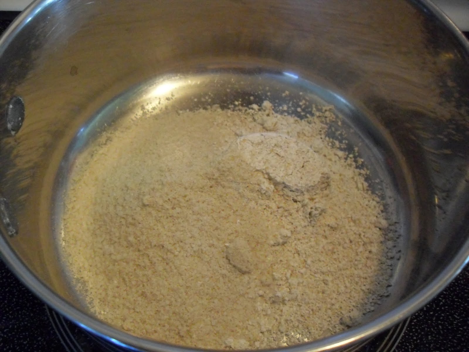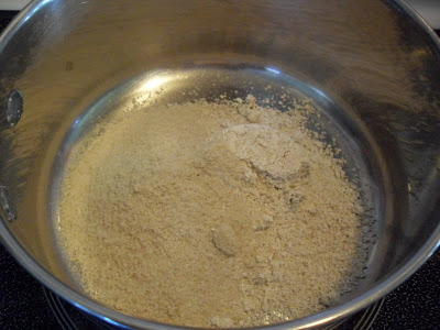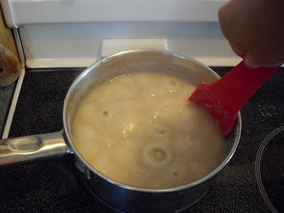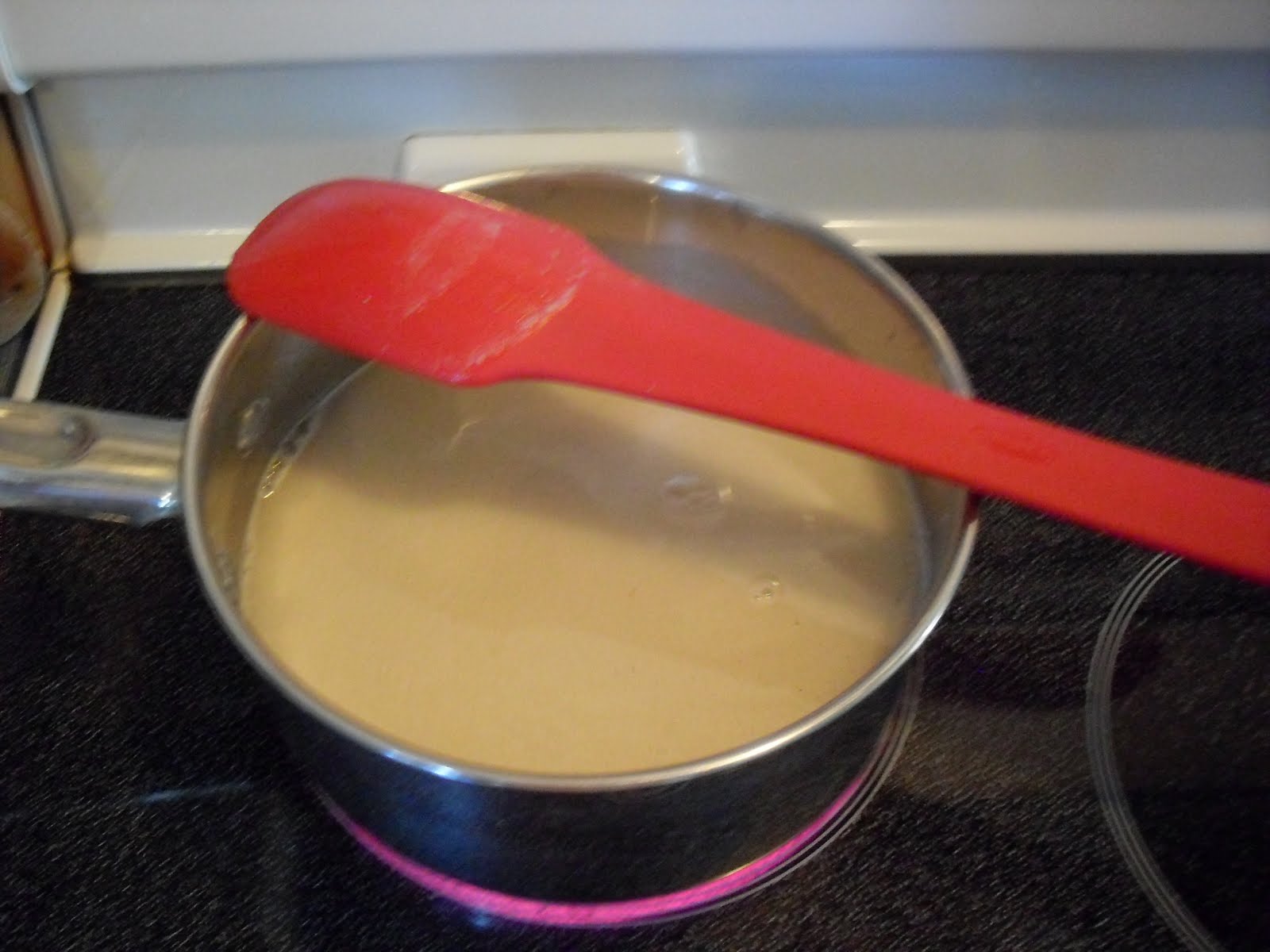 With the heat on high, it will soon begin to bubble. Stir frequently. I like to use a silicon spatula, since I can use it to scrape the cooled cereal out later.