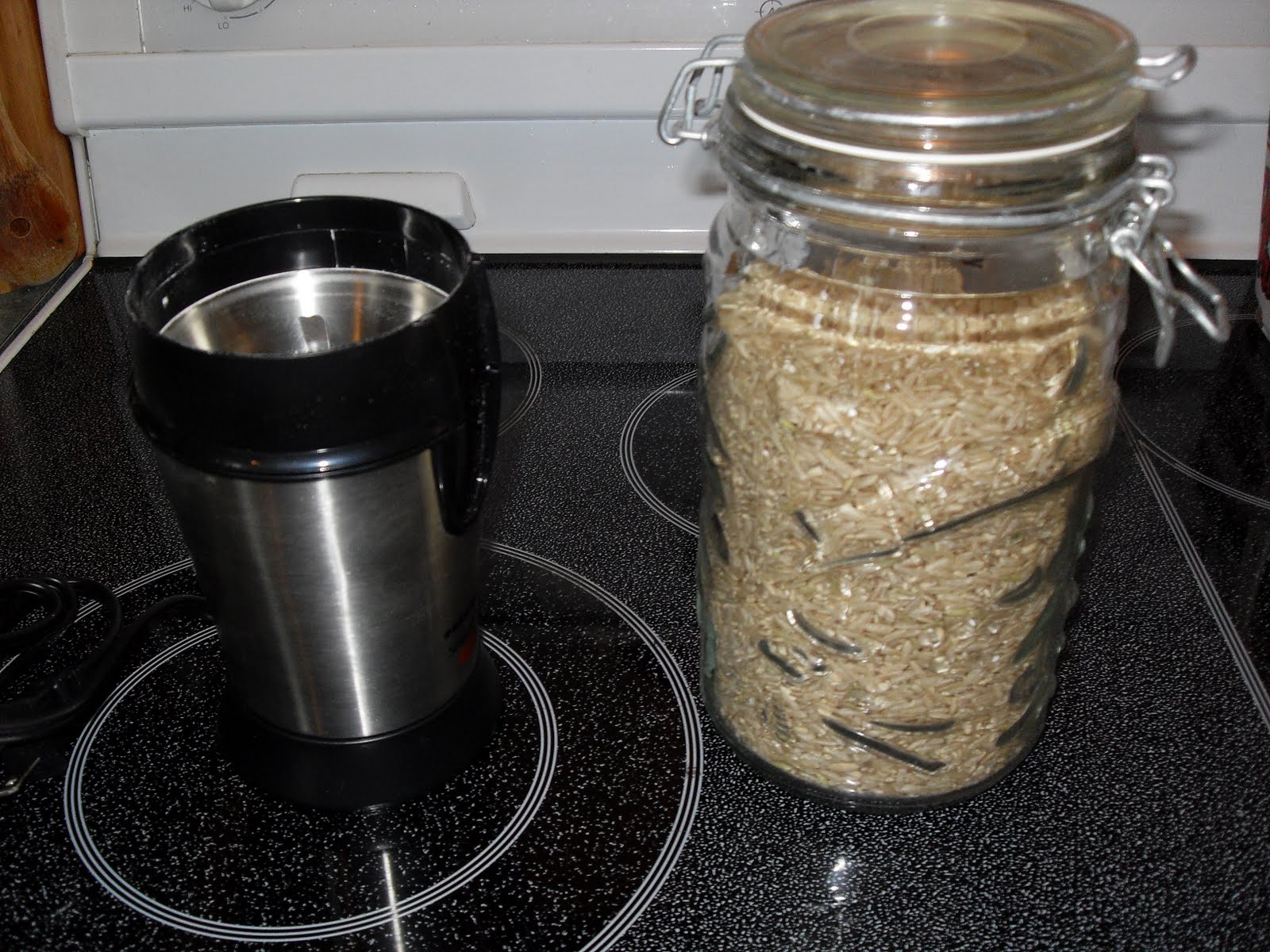 Fill up the grinder with as much rice as it will hold before spilling everywhere which is usually what happens to me. 🙂