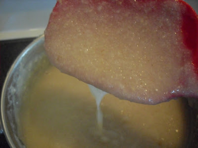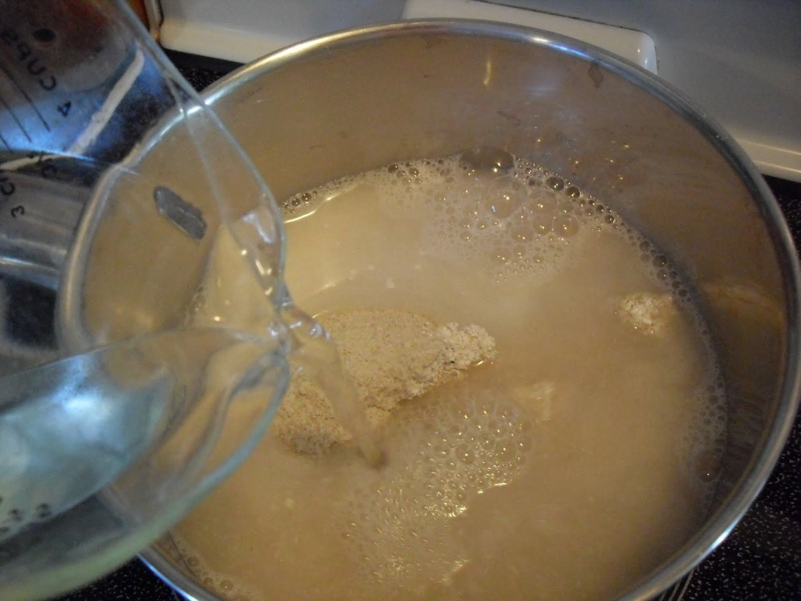 As the full boil begins to slow down, the cereal is now starting to thicken. Lumps can still form quite easily so frequent stirring is best.