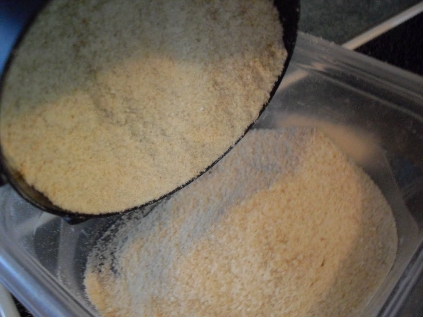 It should look powdery and dry. I dump it into the container that I store it in for later use.