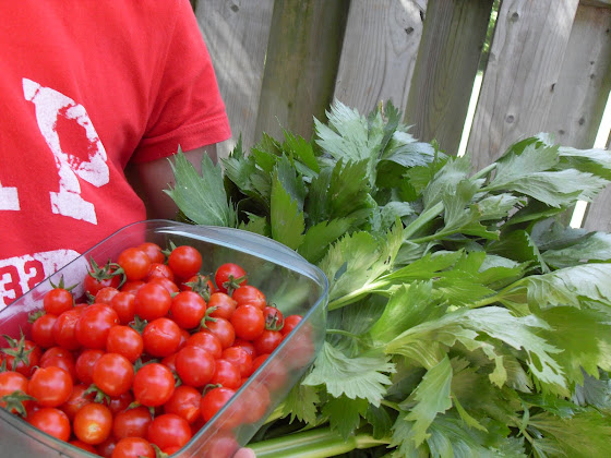 But because it has been so rainy, I have put off this harvest business until this past weekend which meant the entire Saturday morning found me feverishly making pear and applesauce, cooking the last bag of store-bought carrots for baby food, baking bread and scrubbing out the fridge.Baby cherry tomatoes still producing, the rest of the tomato plants were harvested and pulled out of the ground.