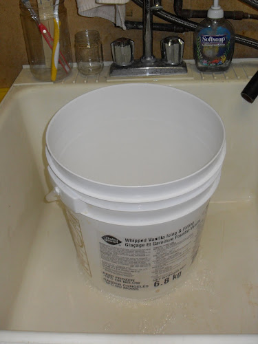 I start with this large, formerly-occupied-by-Dairy-Queen-ice-cream bucket which is probably somewhere in the neighborhood of five gallons but since this is Canada, they don’t use gallons so I’m pretending.