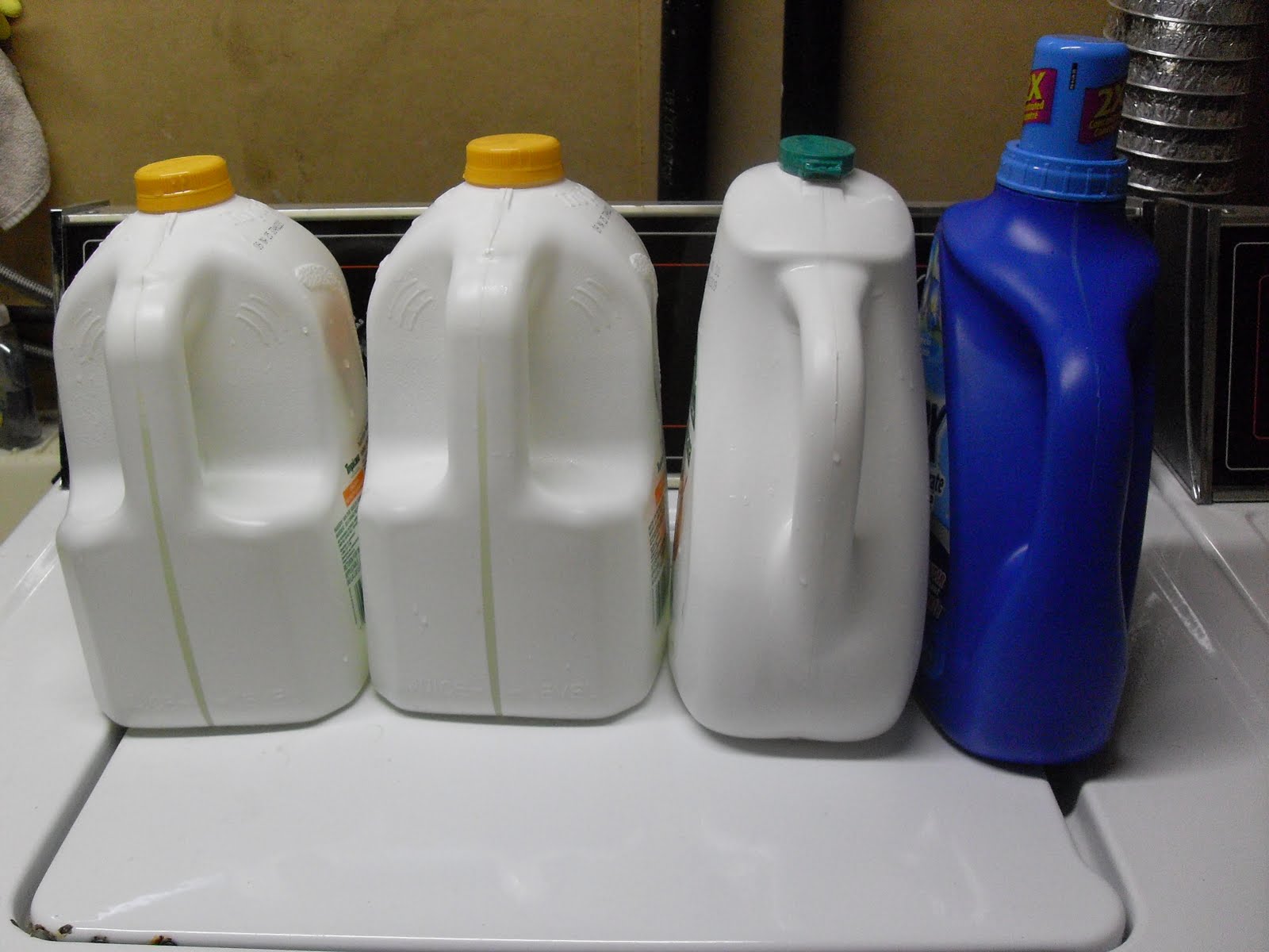 My assortment of containers grew out of my son’s orange juice addiction. Wouldn’t the OJ people be so glad to know? 🙂