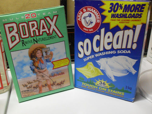 The last two ingredients I currently add are washing soda and borax both which can be found with other laundering products at most stores. (For my local readers, Real Canadian Superstore carries the borax, but not the washing soda which I found last time at Walmart, perhaps a suggestion to either store to carry both is a good idea I just brilliantly thought of now.) smile.