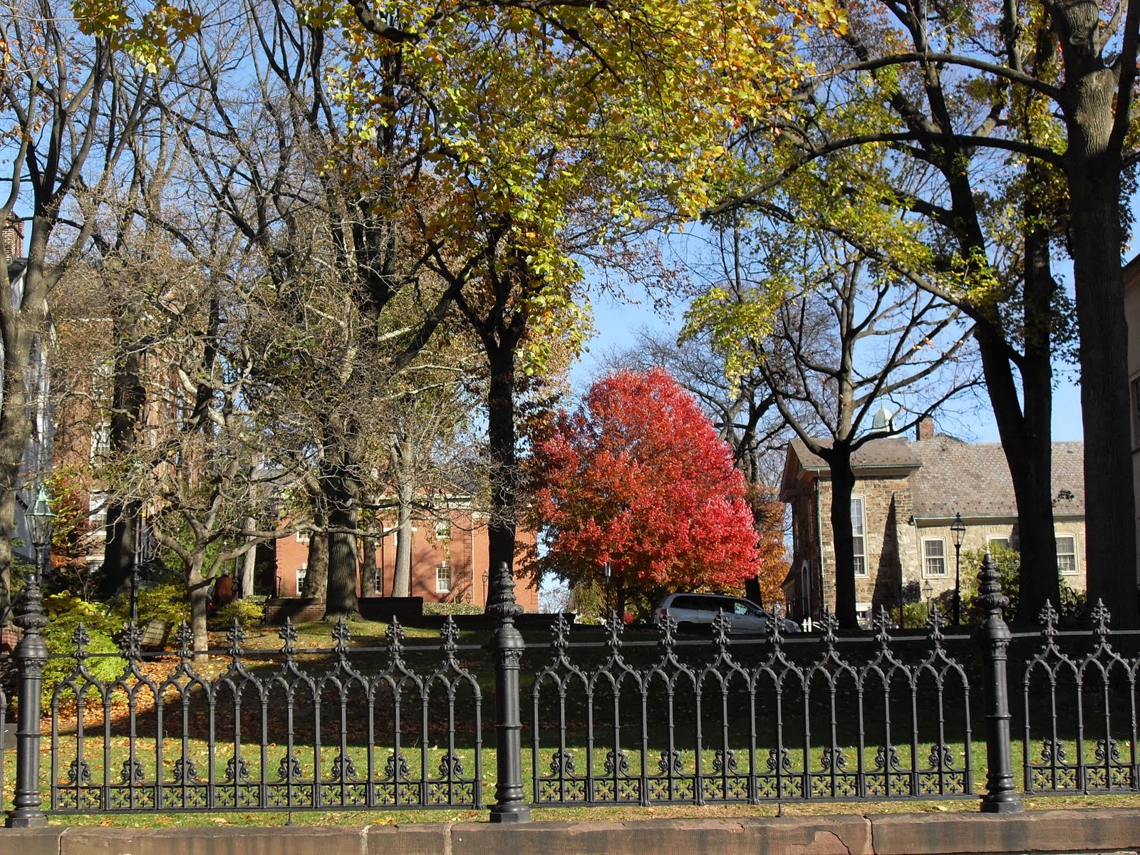 This place is on the grounds of a Moravian Church in Historic Bethlehem in Pennsylvania. A bookstore surrounded by history and culture. A brick walkway leading to a solitary bench and a quiet reminder of God’s presence. This place has been a wonder to me since my teen years, drawing me into an idyllic moment where the moment’s cares are forgotten and time seems to hold its breath. A magical place that is real which is what we all want in some form or another. A reaching to the back of the wardrobe hoping to feel the trees and snow and see a lamppost brightly burning. This place is my wardrobe and these images are what helps me remember its magic.