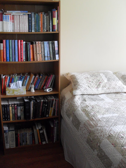 Sleeping surrounded by bookcases. Sigh. I will now turn off the computer and head to bed with a book.