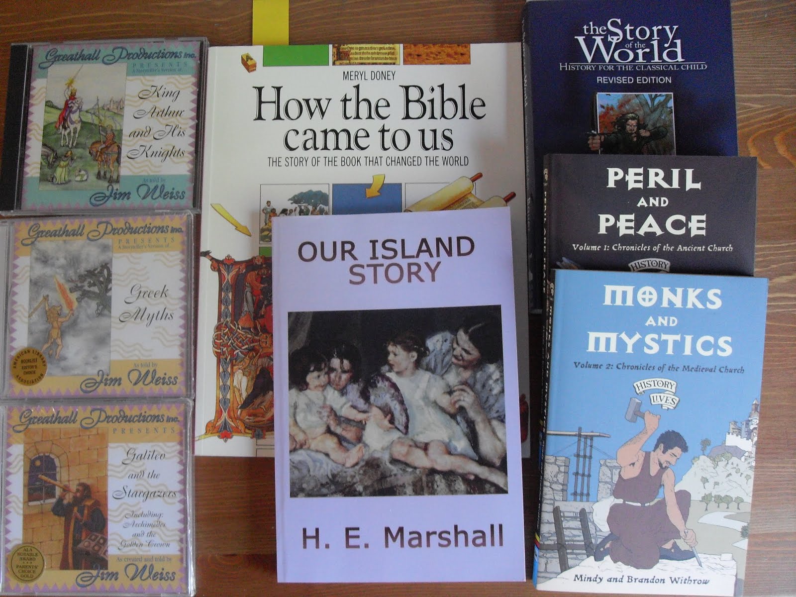 – Working on History lessons through The Middle Ages.(I rearrange order of lessons) Made it up to the Vikings so far. Incorporating church history people and events. Will post resource list soon.