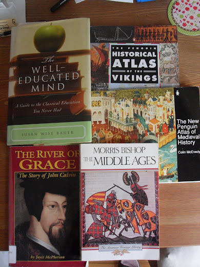 * I have spent the bulk of my summer hours working on our history lessons and I am pleased to only have 200 more years to go through of the official Middle Ages. The end is in sight and the church history planning is mostly done as well!