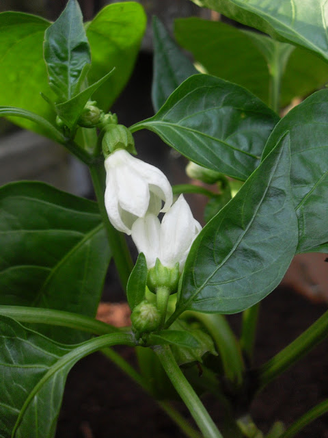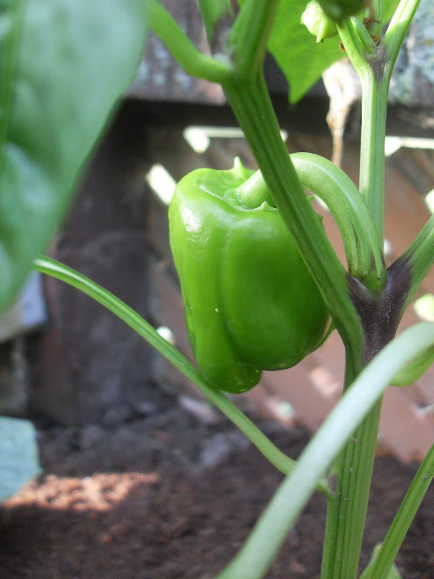 These are three yellow sweet pepper plants I bought on a complete impulse and they are making me so happy with their flowers and fruit. I haven’t tried peppers since my first veg garden several years back but so far they are doing very well.