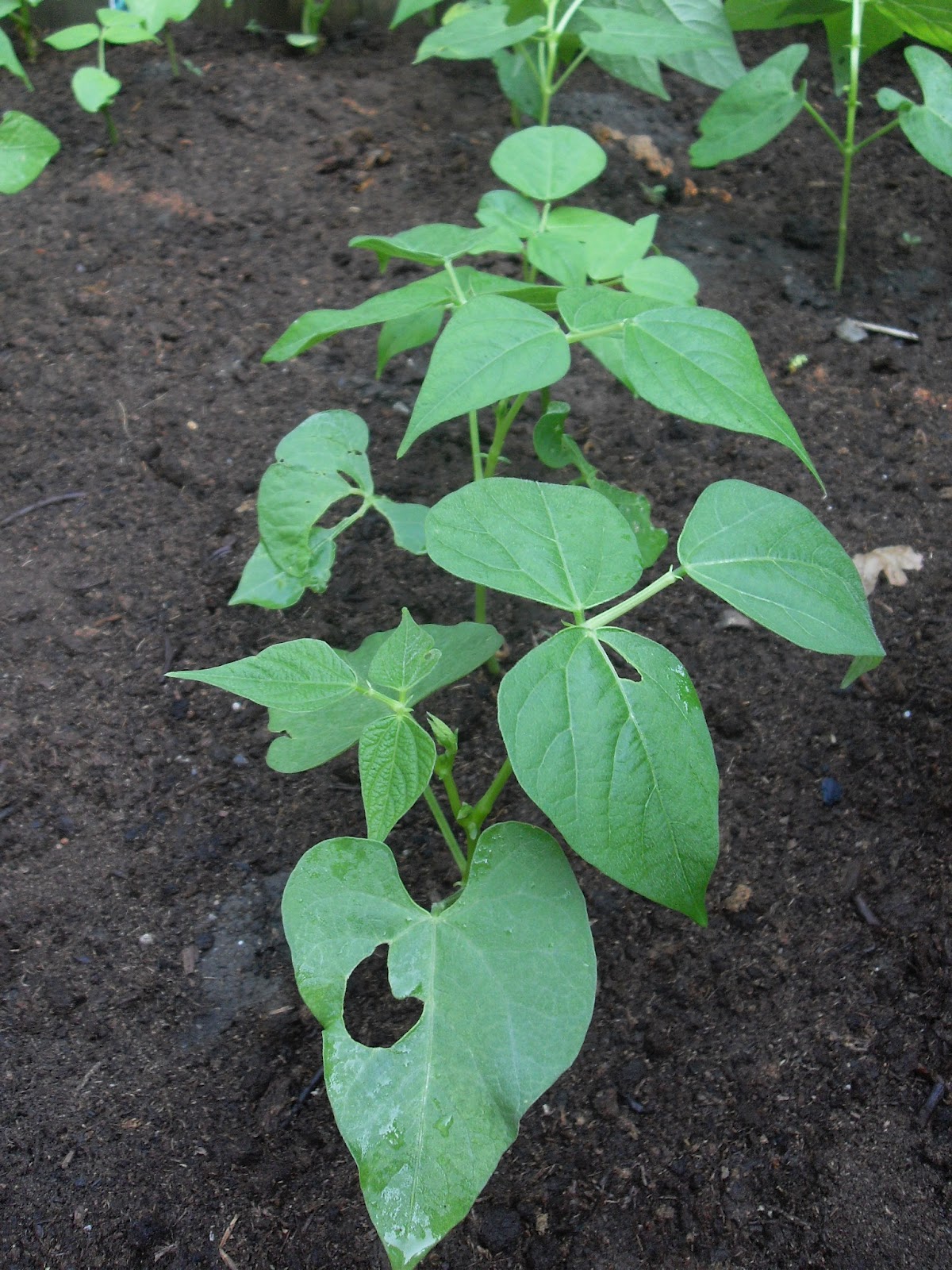 After despairing over their slow germination, the yellow wax beans are now making up for it. There are new leaves everyday and the plants are just loving the morning shower and warm sunshine.