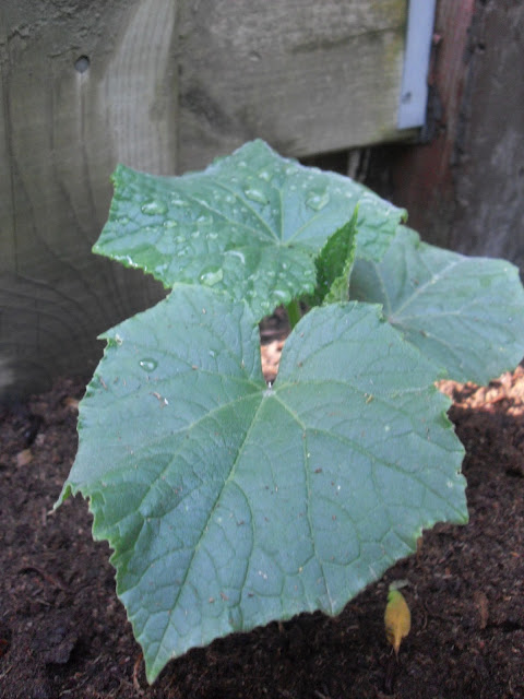 I planted eight cucumber plants this year after a disappointing yield-amount last year. They usually climb the fence alongside the peas.