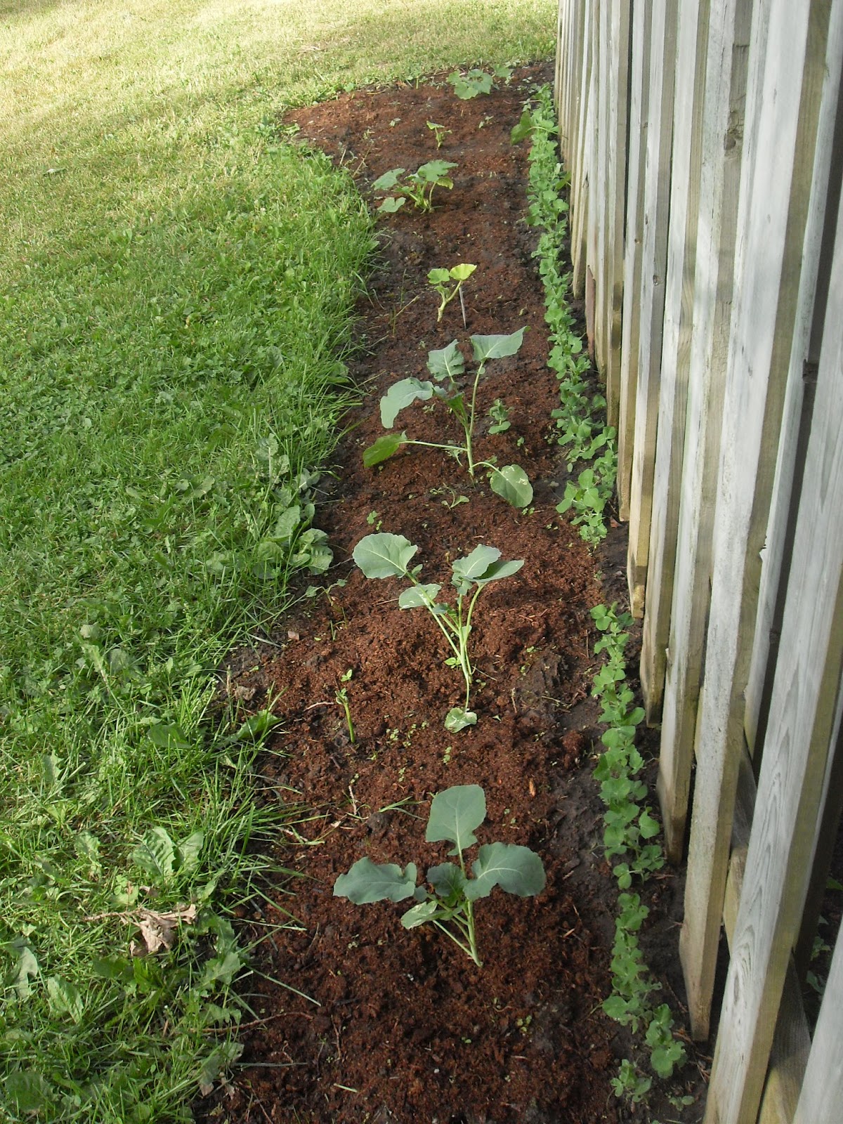 Growing just outside the gate is another row of peas marching along the fence with three broccoli plants grown by my friend Janice. On the far end and wrapping around the corner are three golden zucchini plants and two pumpkin plants which are ridiculously close to everything else. When they start to take off, I will be in trouble for sure.
