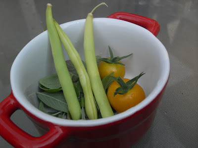 food - outdoors first fruits July 15, 2012 - By Heather We’ve been eating lettuce and using fresh herbs for several weeks now, but this is the first of the yellow beans and the first of those delicious sugary tomatoes!