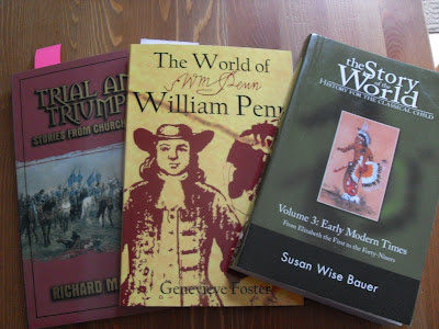 History:  Continuing with The Story of the World, Volume 3 and Trial and Triumph, starting Genevieve Foster’s books with The World of William Penn and George Washington’s World.  Also will be reading through the Mr. Pipes books by Douglas Bond which feature stories of hymnwriters and history.