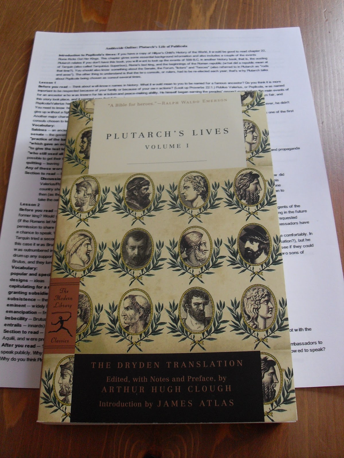 I am jumping into the new world of Plutarch’s Lives this year starting with a study on Publicola.  I have organized and condensed the very helpful(and free) study guide by Anne White(click on the Publicola link above) and I have begun reading and rereading the selected portions to help me understand this material.  It is hard and different, but after spending some time with recently, I think I am beginning to understand the era of the beginning of the Roman republic.  There are twelve lessons and the reading selections are broken into very manageable pieces and the suggested study rate is one lesson per week.