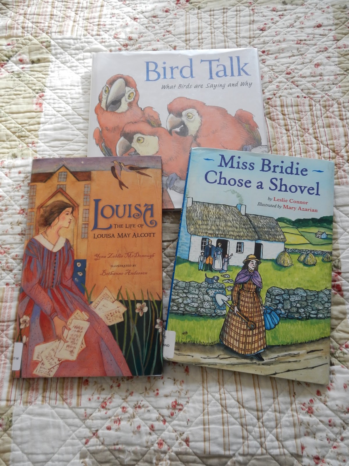 We recently checked out Bird Talk at our library, and Miss Bridie Chose a Shovel is a long-time favorite. The Louisa book I hadn't yet seen, so I promptly put it on hold at our library! Thank you!