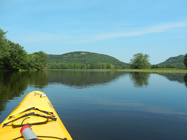 This mountain and the river and creeks that flow around it are in my husband’s childhood town, so leaving the kids with his mom for a few hours, we rented a kayak and toured around these waters, passing by the beaver dams and water lilies in calm, reflective waters.  The river current at the base of the mountain gave us a workout, but also plenty of time to see bald eagles flying overhead and roosting in trees.