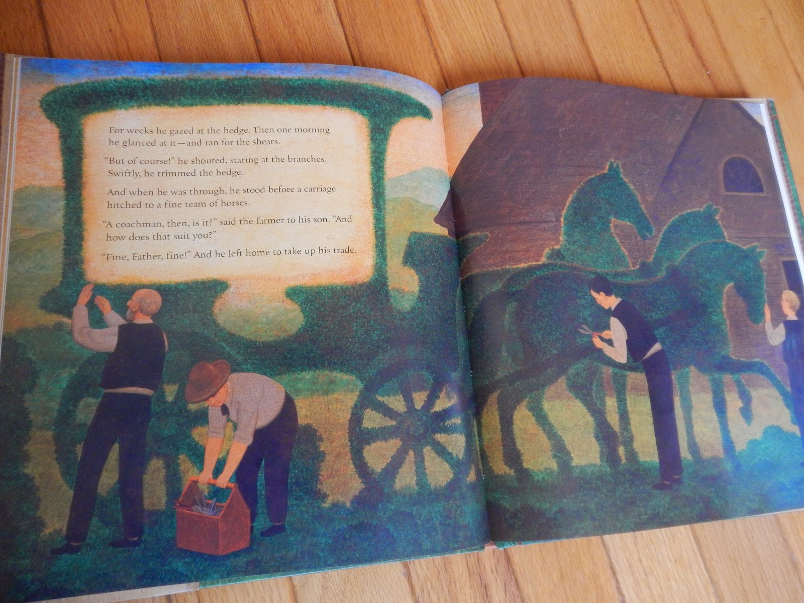 A bit of fantasy, a bit of formulaic sappiness, and a lot of hedge-carving make up this fun story of a mythical farmer and his sons. The artwork carries the story along even through the more predictable parts and ends with the sons honoring their father and his true love. It may inspire some hedge trimming or at least a trip to formal gardens to see some real animal hedges, like maybe Longwood Gardens perhaps.