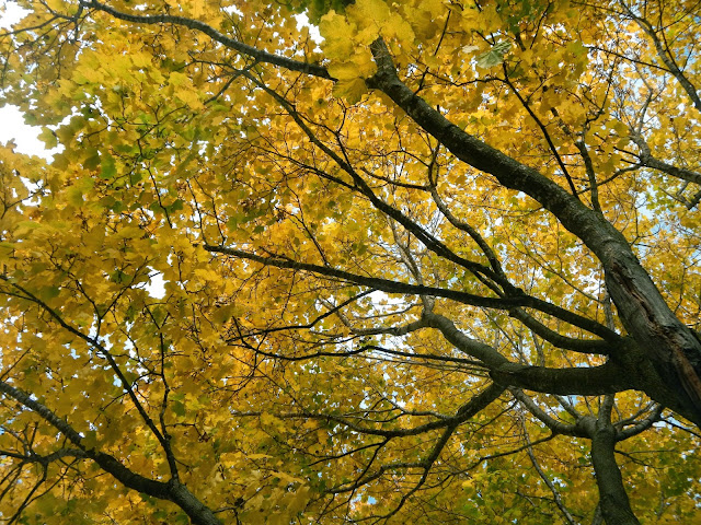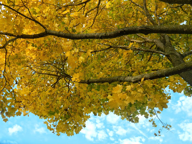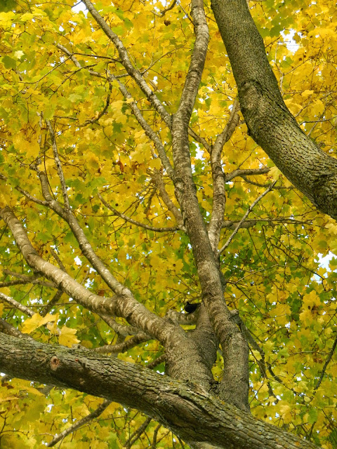 This is also the fall we know. The empty trees laid bare of all their covering. Nests of birds and squirrels exposed for us to find. Every time I find one I think, there you were the whole time.
