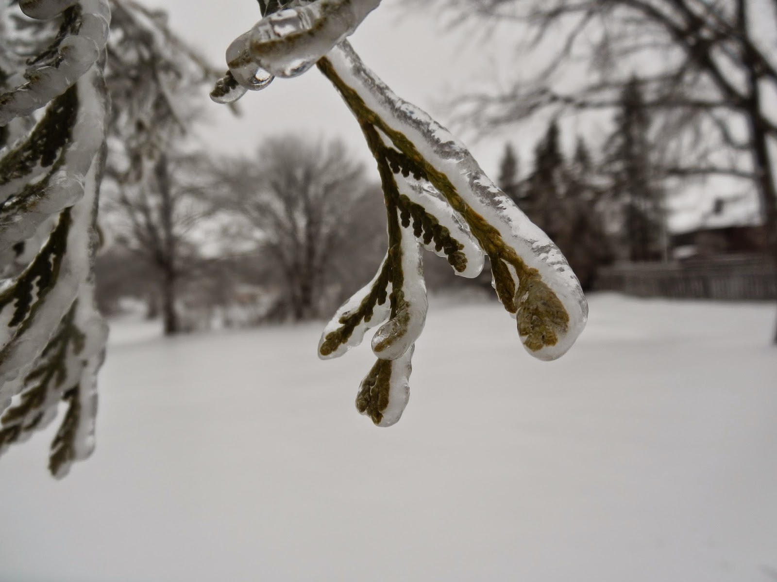 Winter has returned after having a Christmas holiday in that unseasonal land of Mild and Green. Since yesterday afternoon we have been pummeled with snow, ice and freezing rain which has left a slippery sheen to the walkways and cast the trees and their bare branches into frozen statues. They appear waiting to be tagged so they can lift their branches up to sway in the breeze. But all is still and no squirrels or crows are in sight.