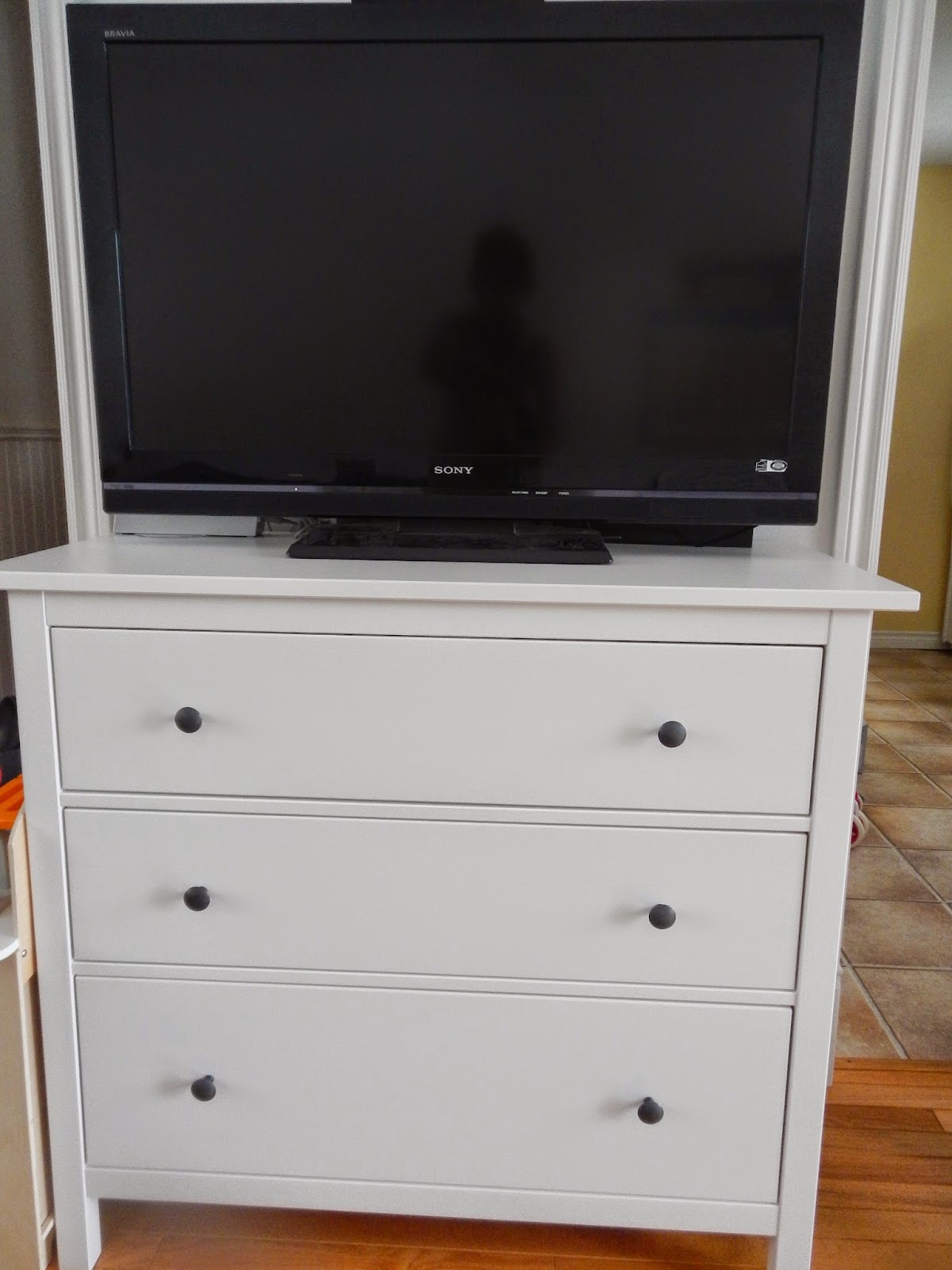 In addition to a new dishwasher, we finally upgraded our living room media storage to something nicer than the too colorful dresser that we had been using for years. This is from the Hemnes line at Ikea and I had been eyeing it up for a while. I really like the Hemnes line which is why we bought the queen bedframe, also in white, sometime last year for our room, meaning our bed no longer rolls on its wheels. It stays where we put it. So modern of us. Anyways back to the media dresser. The space between the two door ways does not allow for the more typical media storage furniture, so this suits the space well. And if we don’t need it in the next house for our television, we can finally use it for a real dresser. You know, for clothes and unmentionables.