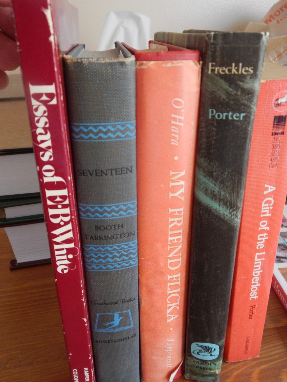 The woman who has babysat our kids since they were little has a few books from her childhood in her house. She’s not a reader, but she keeps them for sentimental reasons. She has several of Gene Stratton Porter’s books in vintage hardbacks similar to these that I covet the very few times I have seen them on the shelf in her bedroom. I have wondered what will become of these books and how long I have to wait before offering to take them off her hands for a small fee. But to ask about them is too bold, so I covet in quiet. So to have found two copies for myself has unburdened me immensely in this area. I am now free to let those books go. Just completely free. Yep.