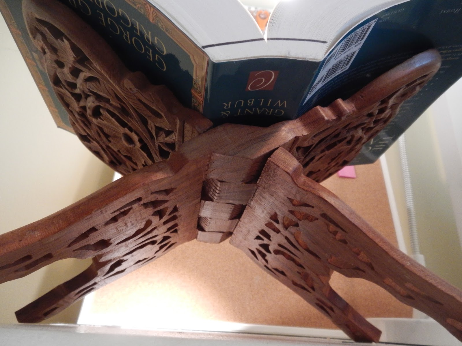 Isn’t it magnificent?  It fold so smoothly and delicately, yet it is sturdy and solid. My twelve year old son was happy when I told him I bought it. He said we could put a dictionary there for easy reference. Of course. But right now, it holds my copy of George Grant and Greg Wilbur’s The Christian Almanac. Perhaps we just need a couple more for the dictionary and atlas and Bible and anything else we need to keep handy. But for this house, this little one is a good start.