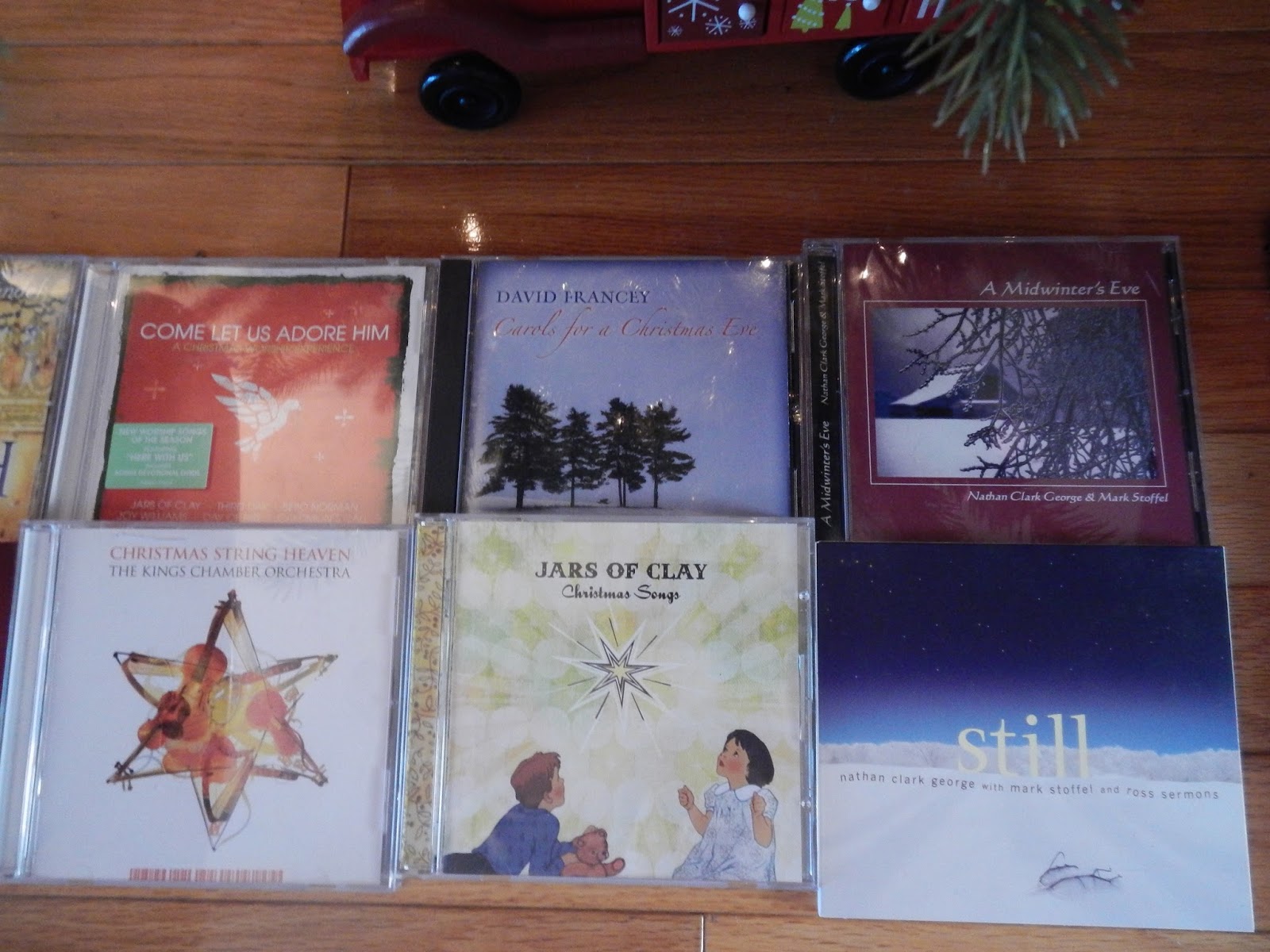 I’m old-school and still prefer to listening to cds on a stereo. Here are the top ten in our collection that I play throughout the day. I’ve taken a couple of close-ups so hopefully you can read the covers since I’m feeling lazy about typing up a list or providing links. Filling our small house with good music helps combat the mayhem that sometimes breaks out over here.