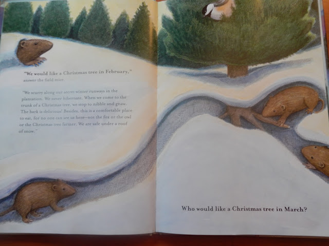 So I enjoyed the Twelve Kinds of Ice (see below) so much I researched what else she had written and found this one at the library. A great nature habitat book on the relationship between trees and the animal world who live amongst them. And then of course, the humans who love their Christmas trees. Very, very nice.