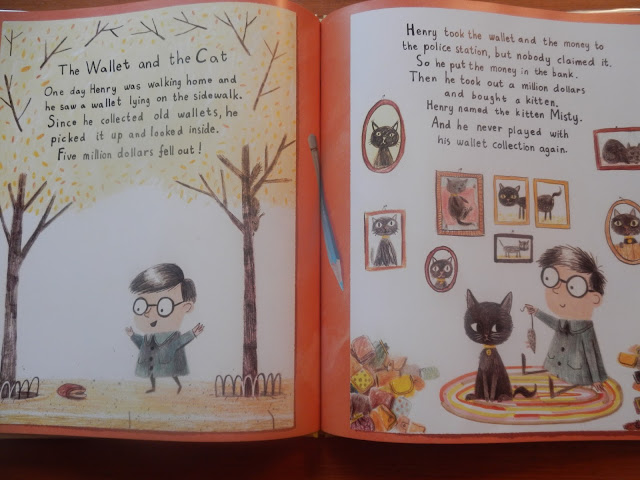 This book contains stories within the story and each one is fun and unique. My twelve year old laughed loud and long over the part pictured below where someone in a story finds a wallet with five million dollars inside. Cute and well done. A keeper.