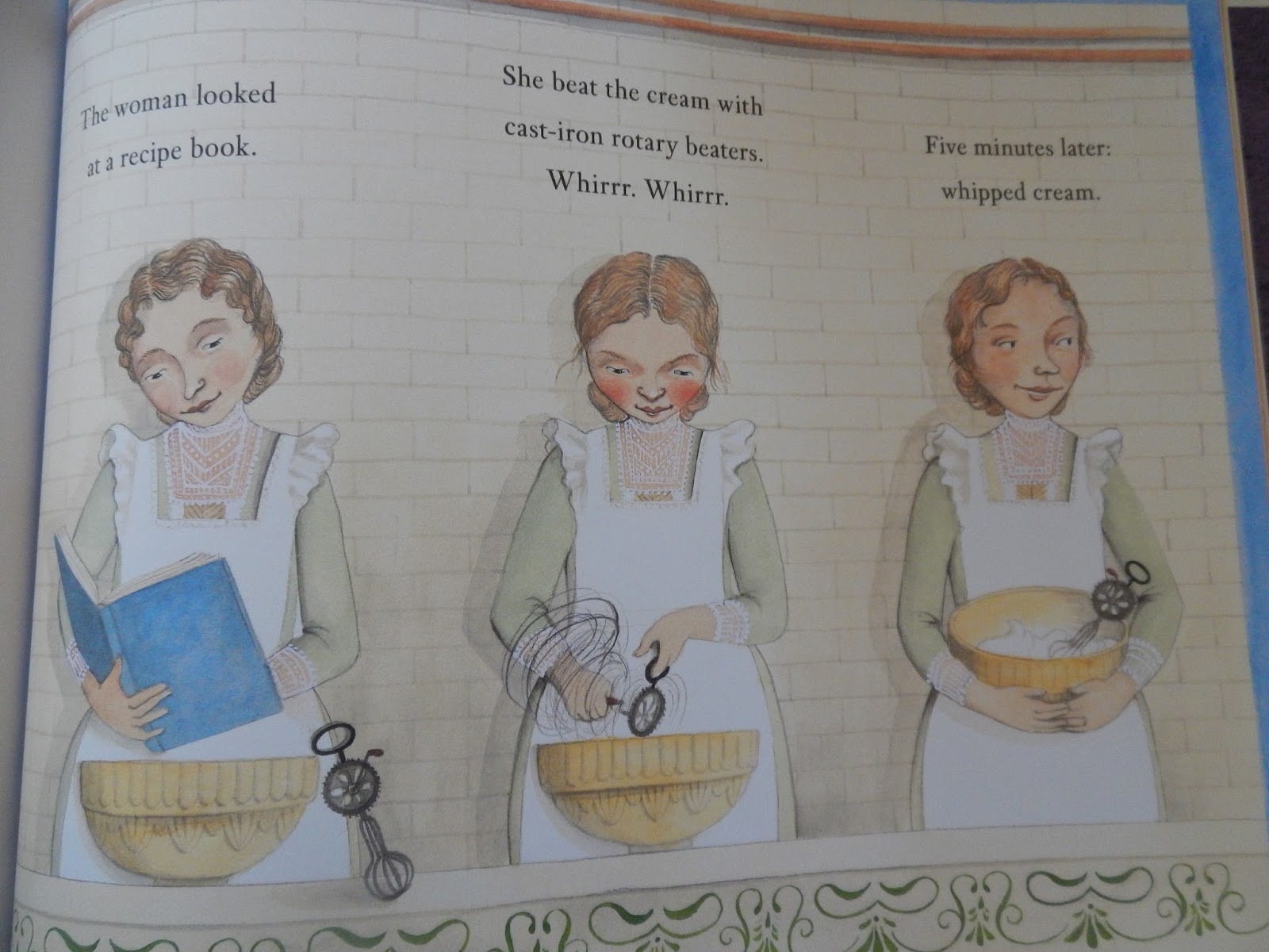 So I guess this book stirred up some brouhaha in the book world for its portrayal of cheerful slave-servants making a dessert in the kitchen. And judging from the edited, updated, and improvised Goodreads reviews, many readers didn’t know they should be upset until some book related media outlets told them to be. Thus the hasty post-scripts and asterisks denoting further additions to their original book reviews. And then with a nod to political correctness, an inter-racial couple is celebrated on the last pages. But the focus on household inventions and lifestyle changes in four different centuries is interesting, although the dessert itself, the blackberry fool is unremarkable. The illustrations are nice, but not a book I would care to own.