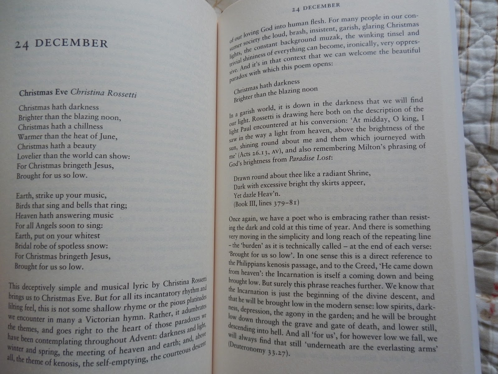 A treat for myself that I bought in November to read through the Advent and Christmas season. I follow Malcolm Guite on Facebook so I knew the quality of poetry he writes. What I did not expect, although I should have, was the quality of the poem commentary he provides in this book which contains both his own original poems and other poets. So much rich theological and literary content, it was a perfect blend. I will be reading this again and again as well as getting his other books for other times of the year.