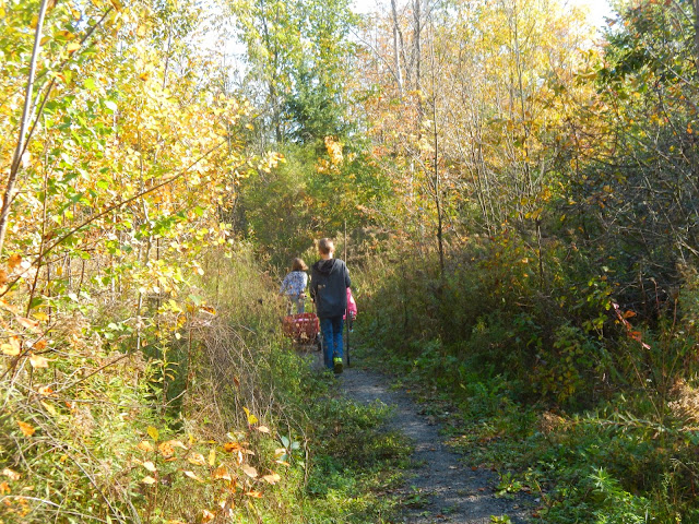 Now, rewind all that and you get October. Still so much green turning yellow turning red and orange, but as the month creeps on, the colder temperatures shock the system into scrounging for warm clothes and hats and mittens. Then suddenly there are more leaves on the ground than on the trees and everywhere you walk, your path is softened by leaf litter, the best specimens tucked into many different books to keep flat as they dry and maybe even waxed later.