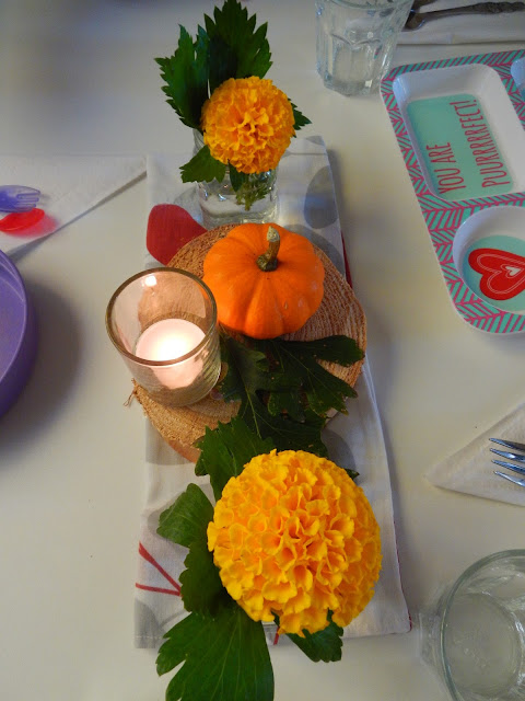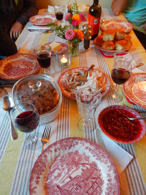 Your Thanksgiving pictures made me want to be there in the warmth with the good food and brilliant table decorations. I am so envious of you having celery and flowers that you could bring in from the garden – and the creative intelligence to use those vegetables. "Everyone" uses squashes but celery is not even possible for most of us.