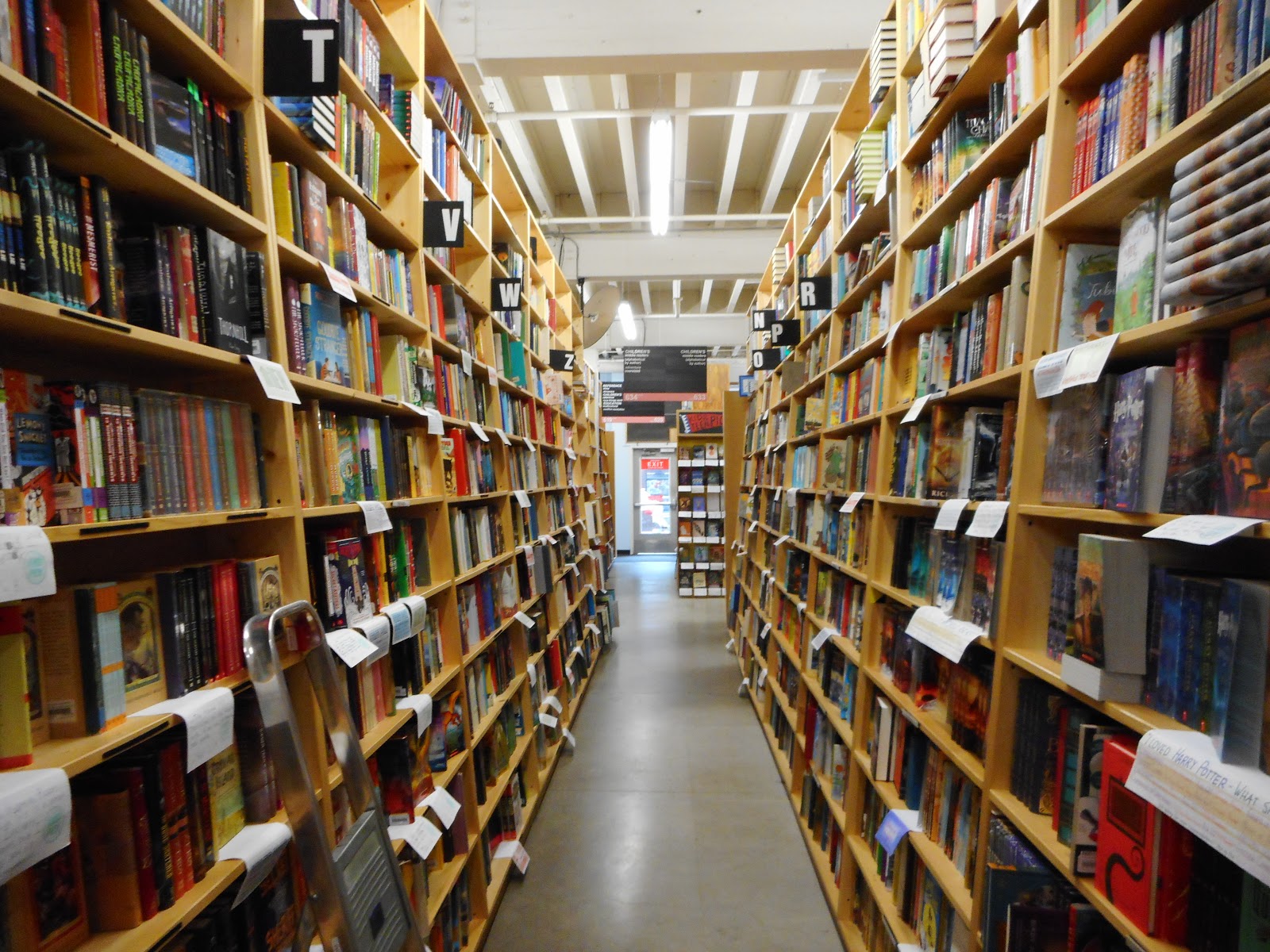 And my first destination, Powell’s Books, of course. We had walked past it the previous evening on our way to Whole Foods to get some dinner for ourselves, so I knew the various entrances this gigantic building offers. I came in through the main entrance seen below, found the store directory and walked straight to the Rose Room, the wonderful Children’s section. I browsed for a couple of hours, just in that section.