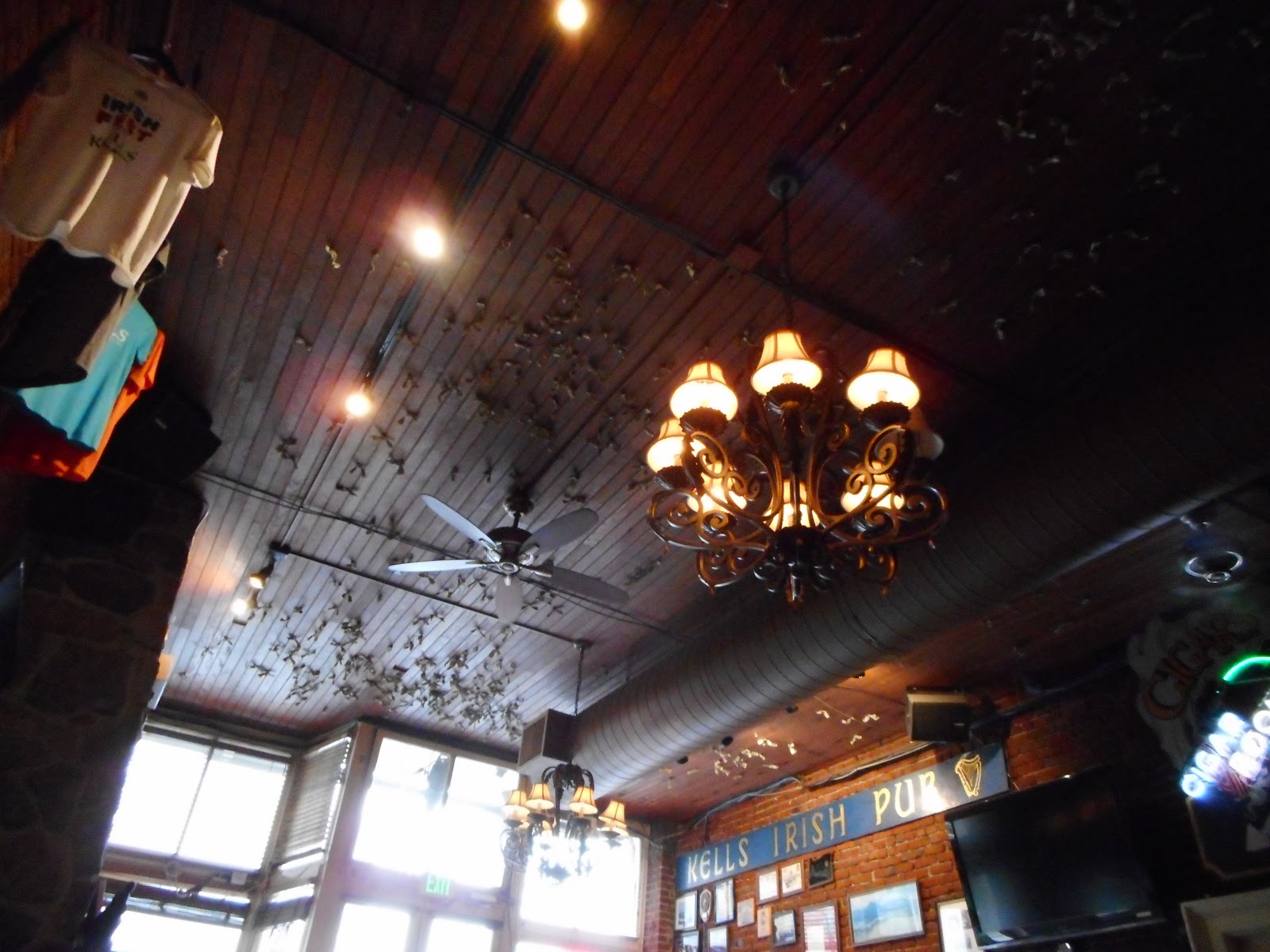 Out for dinner to a pub that I had picked it out of a guidebook of eateries from the Visitor Information Center, except it was apparently no longer in existence,. So we looked around and spotted this Irish pub, Kells, just sitting across the adjacent corner and walked in for some fish and chips. It was not the best fish and chips, but it filled us up. It looks like they had attached many dollar bills to the ceiling; the lighting was cozy and the place was quiet, but the stage showed that live music would be starting later. Tired, we walked back to our hotel for a quiet night in.