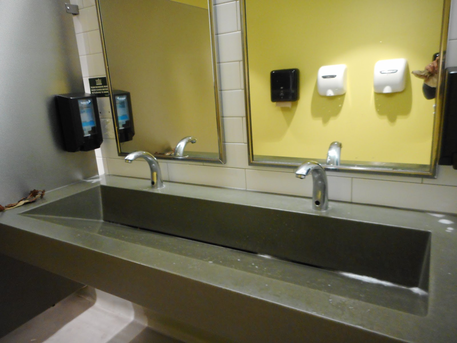 These bathroom sinks in Whole Foods seemed to keep the water from splashing out, but made me feel a bit like I was washing my hands at an animal trough.