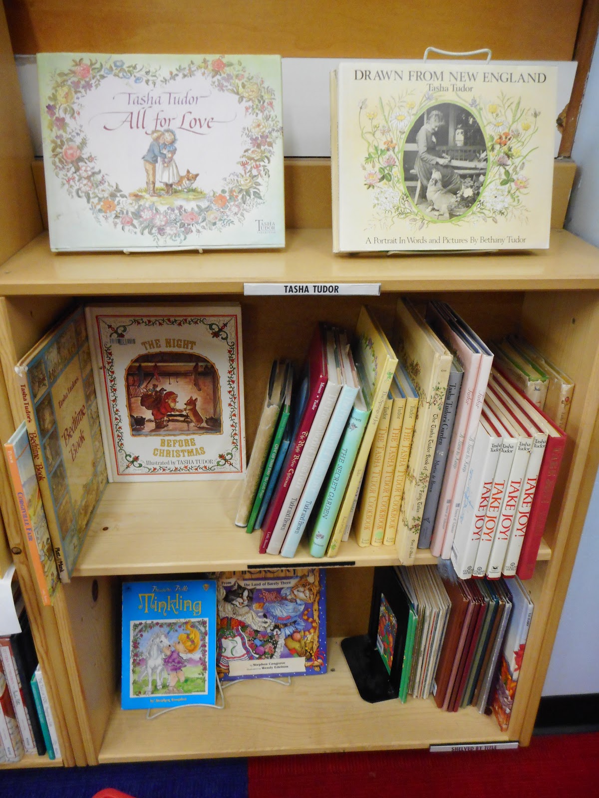 Because they sell both new and used, you get to see various editions of the same book that you might not normally see if you order either online or buy from a new bookstore. It was so inviting, like this small bookshelf dedicated to all things Tasha Tudor. The Beatrix Potter shelf is to the left of this one and even taller and more full.