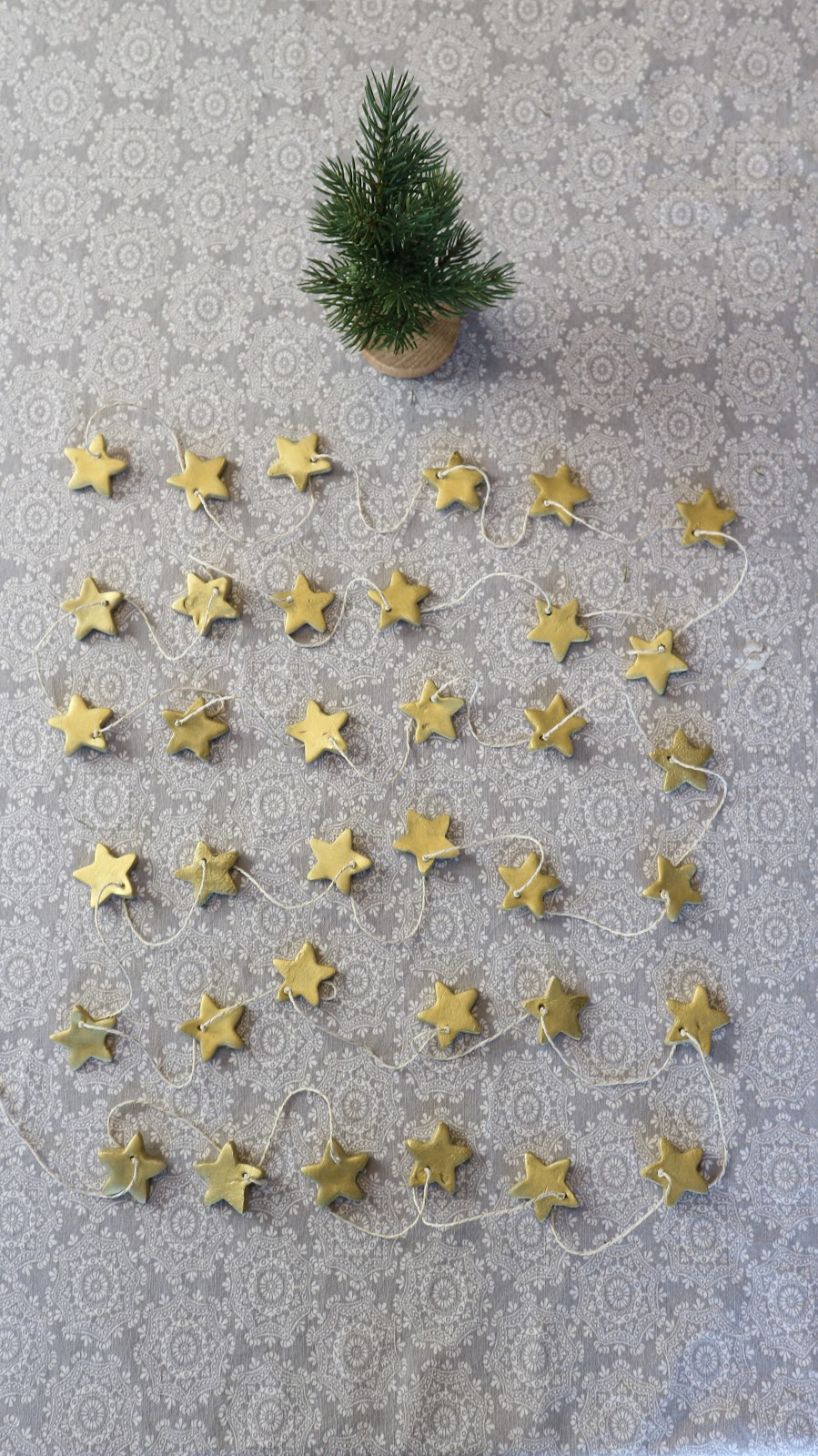 It’s a golden starry line-up, ready to shine wherever I place it. Some of the stars are thick and some are thin. Some have marks and dings and funny curved parts. It’s okay, this didn’t come from a factory, it came from my hands.