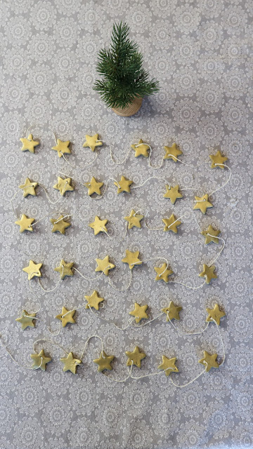 I pictured it in my mind. Strung along our tree, maybe hung above our barnwood gas fireplace or on my garland branches by the dining area. The stars would be gold and provide a bit of shine to our white walls. I knew I could make it, but I didn’t have everything I needed. I searched several stores for miniature cookie cutters in a basic star shaped. I finally found a set at Michaels that were just right.