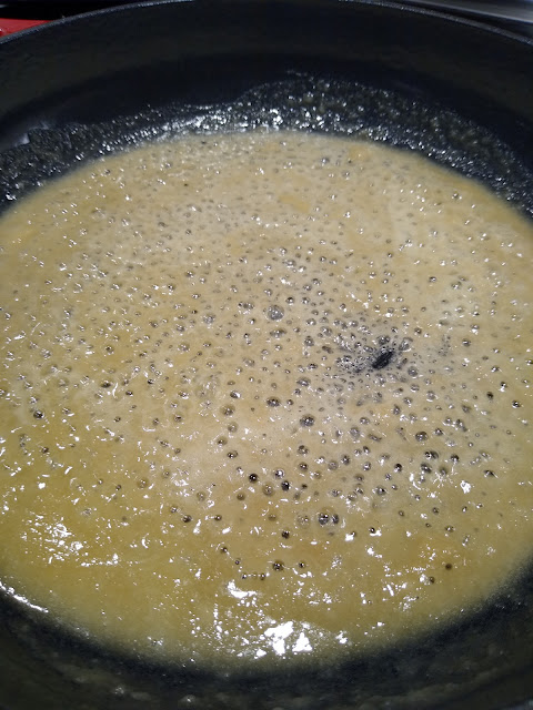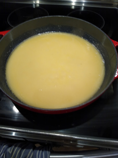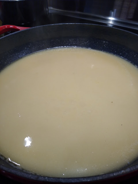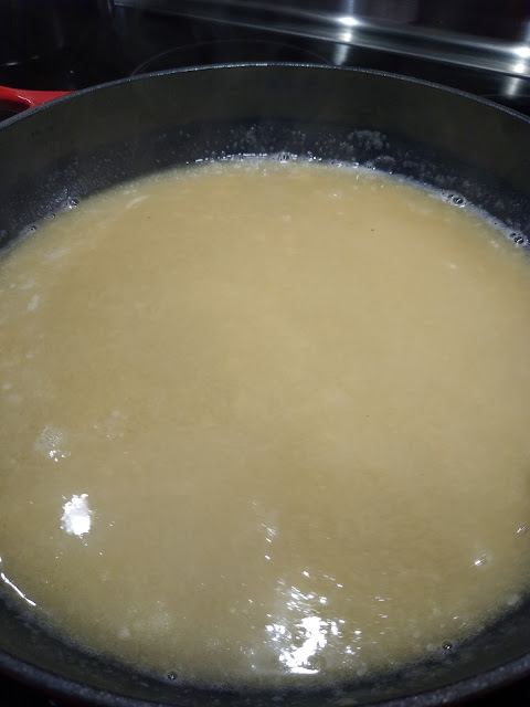 The next few pictures look bland and boring as I add the broth and bring the gravy to boil.