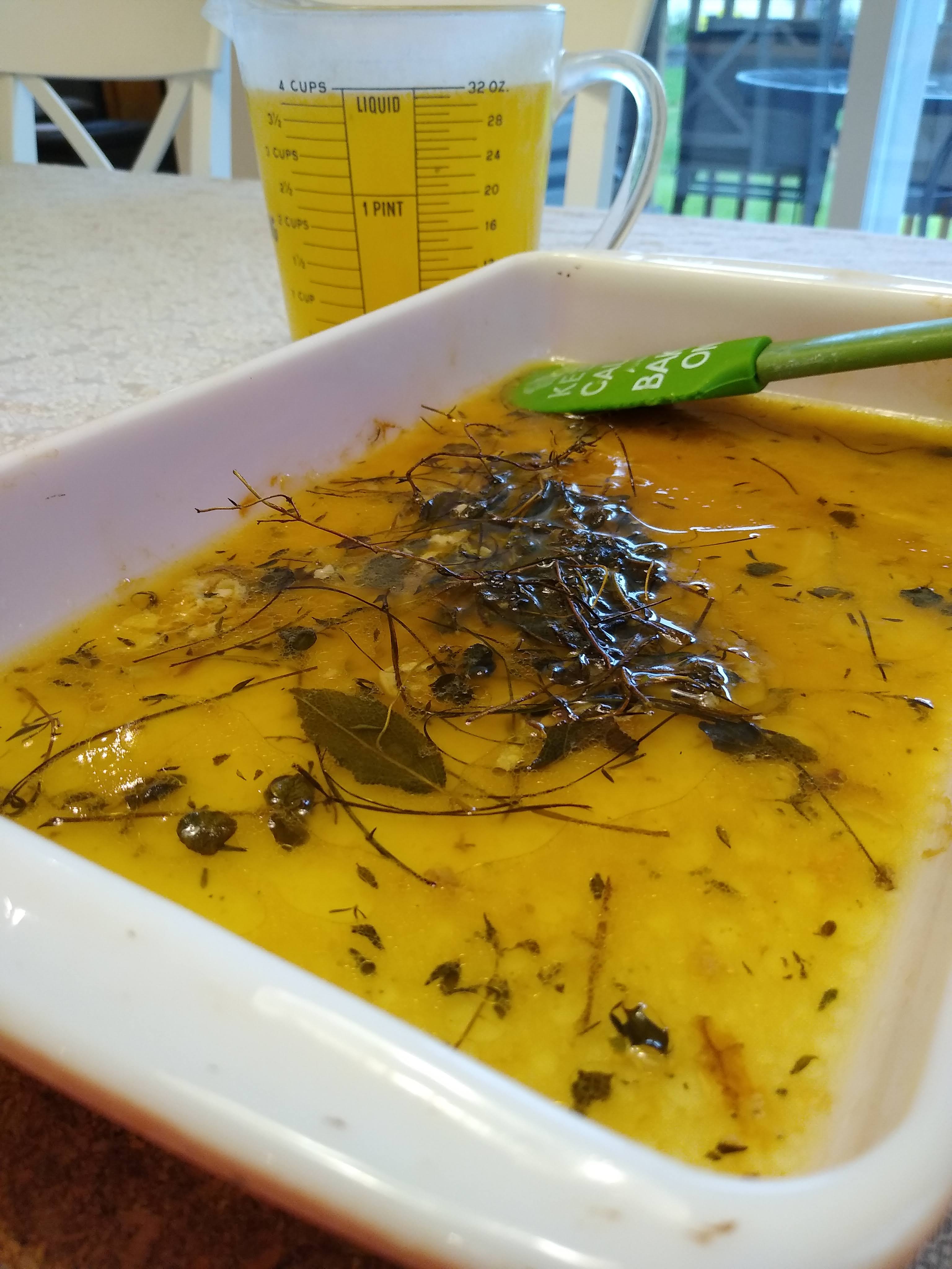 But there are many others out there who have perfected the technique. This is my clumsy version for our family. Sometimes, I have to strain the gravy because of flour lumps, it doesn’t happen that often, mostly because I think that if I keep my broth hot or at least warm, the roux blends in properly. But I’m not a perfect cook, sometimes I have to strain my gravy and keep going. This time, I added all my fresh herbs to the chicken in large pieces, sticks and all. You don’t have to do that, just any dried herbs and salt and pepper will be enough.  Or no herbs and whatever spices you want.