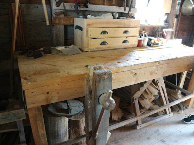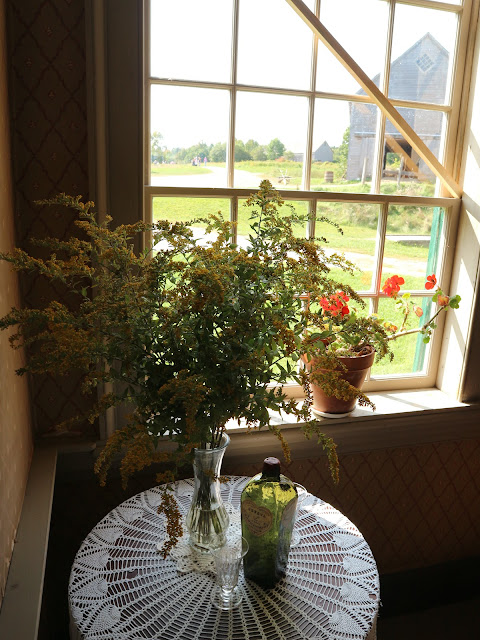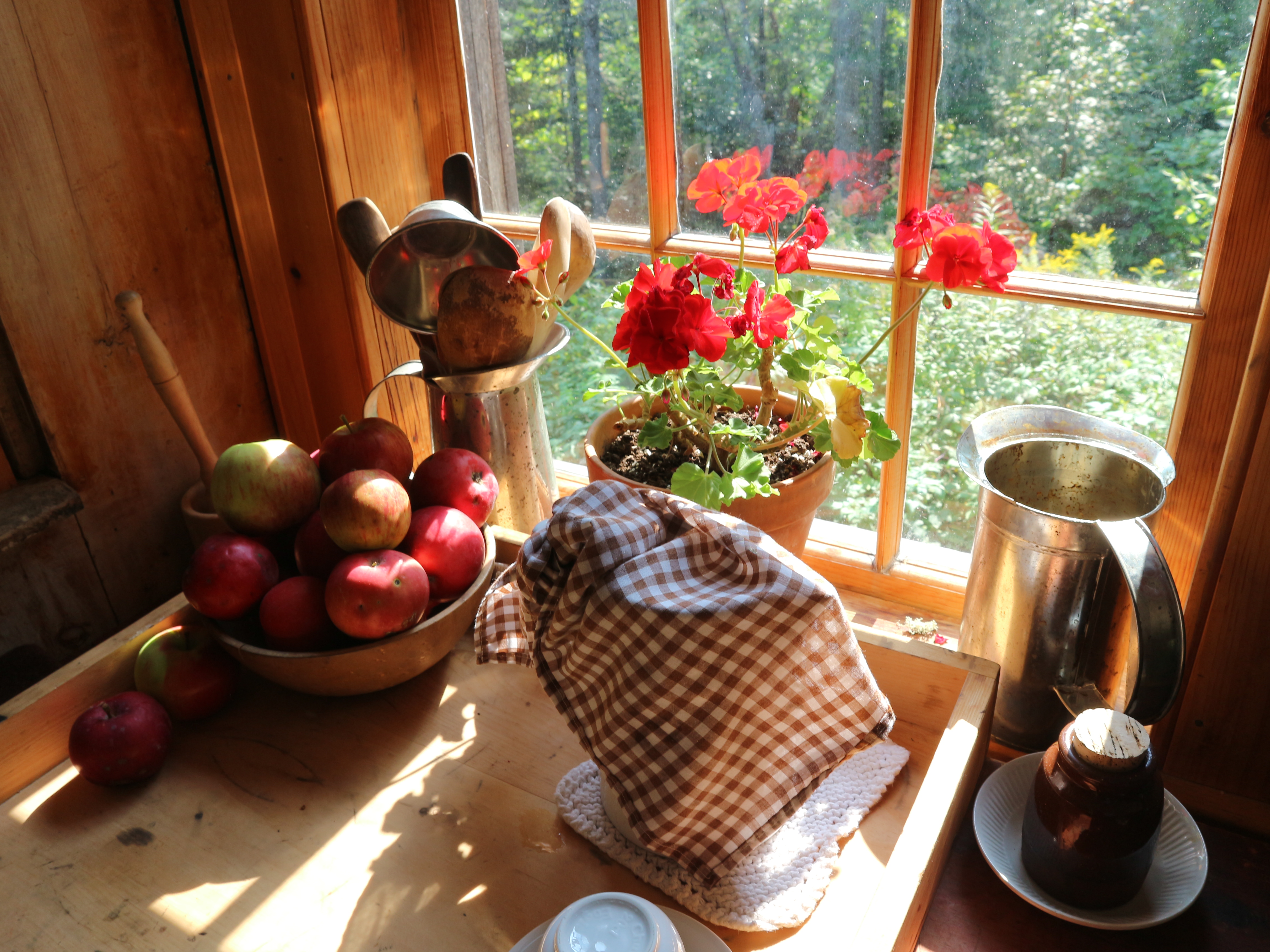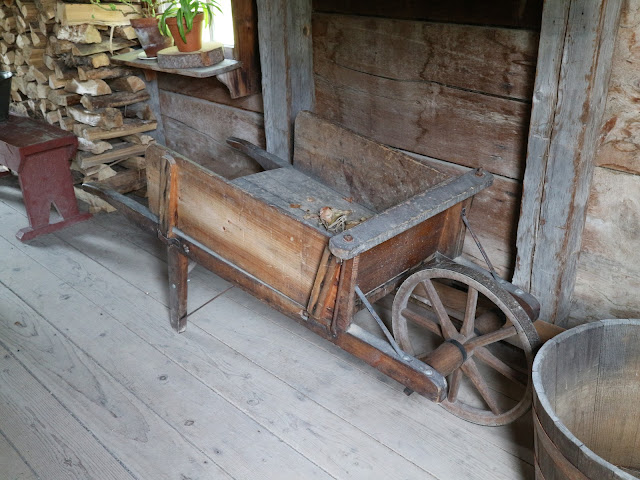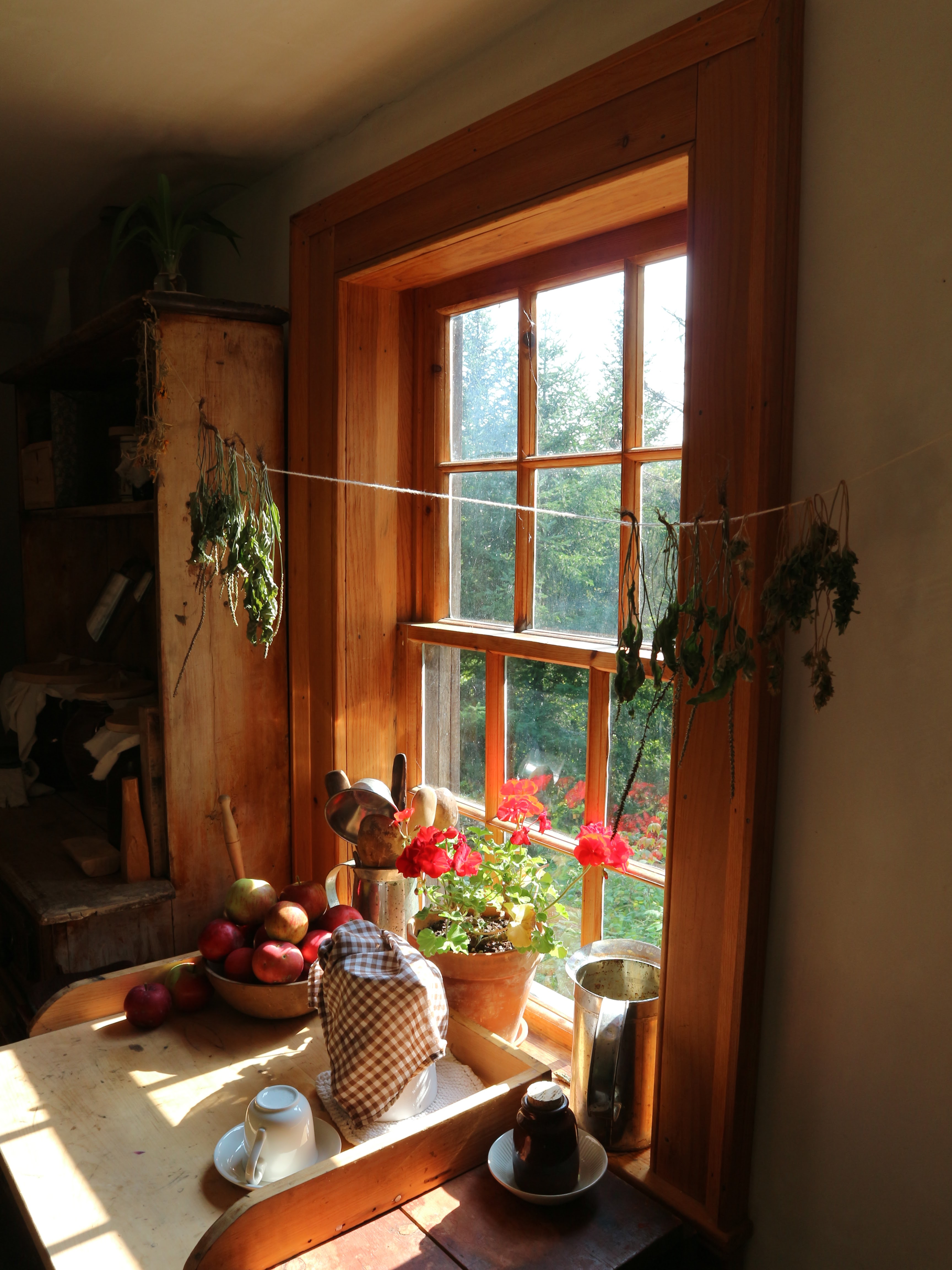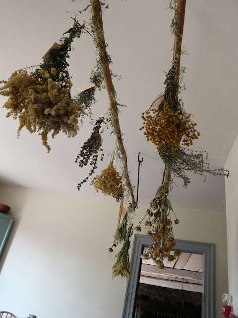 The sunshine pouring into the houses and barns heightened the natural beauty of the items of wood, crockery, natural fiber cloths and botanicals that we found inside. To have such beautiful, well made items to use in kitchenwork, housekeeping and woodshops that can be mended or remade nearby is something most of us now know very little about.
